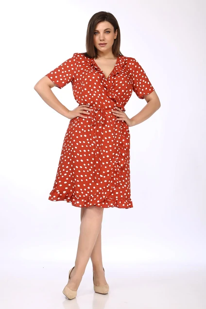Платье 3698 красно-оранжевый + горох Ladysecret