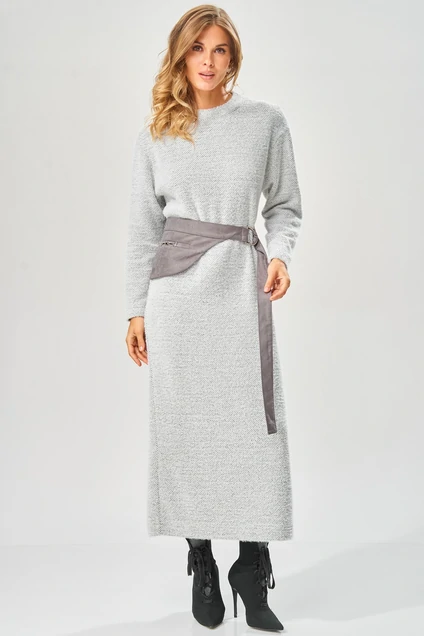 Уютное стильное повседневное платье длиной "в пол" с оригинальным поясом для осенне-зимнего сезона.