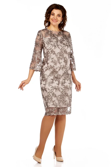 Нарядное платье средней длины полуприлегающего силуэта, выполнено из эксклюзивного кружева-вышивки с фигурной каймой. Впереди нагрудные вытачки, по спинке - центральный шов, разрез и застежка молния. Рукав 3/4, втачной, слегка расширенный. В таком платье Вы почувствуете себя королевой.