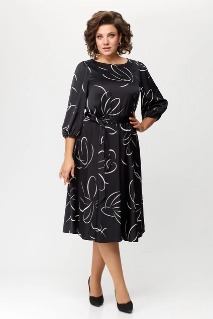 Платье женское полуприлегающего силуэта по талии на резинке. Горловина округлая. Рукав втачной со сборкой на резинке по низу. По спинке декоративный разрез в области горловины. Изделие без застежки. В комплекте пояс из основной ткани.
