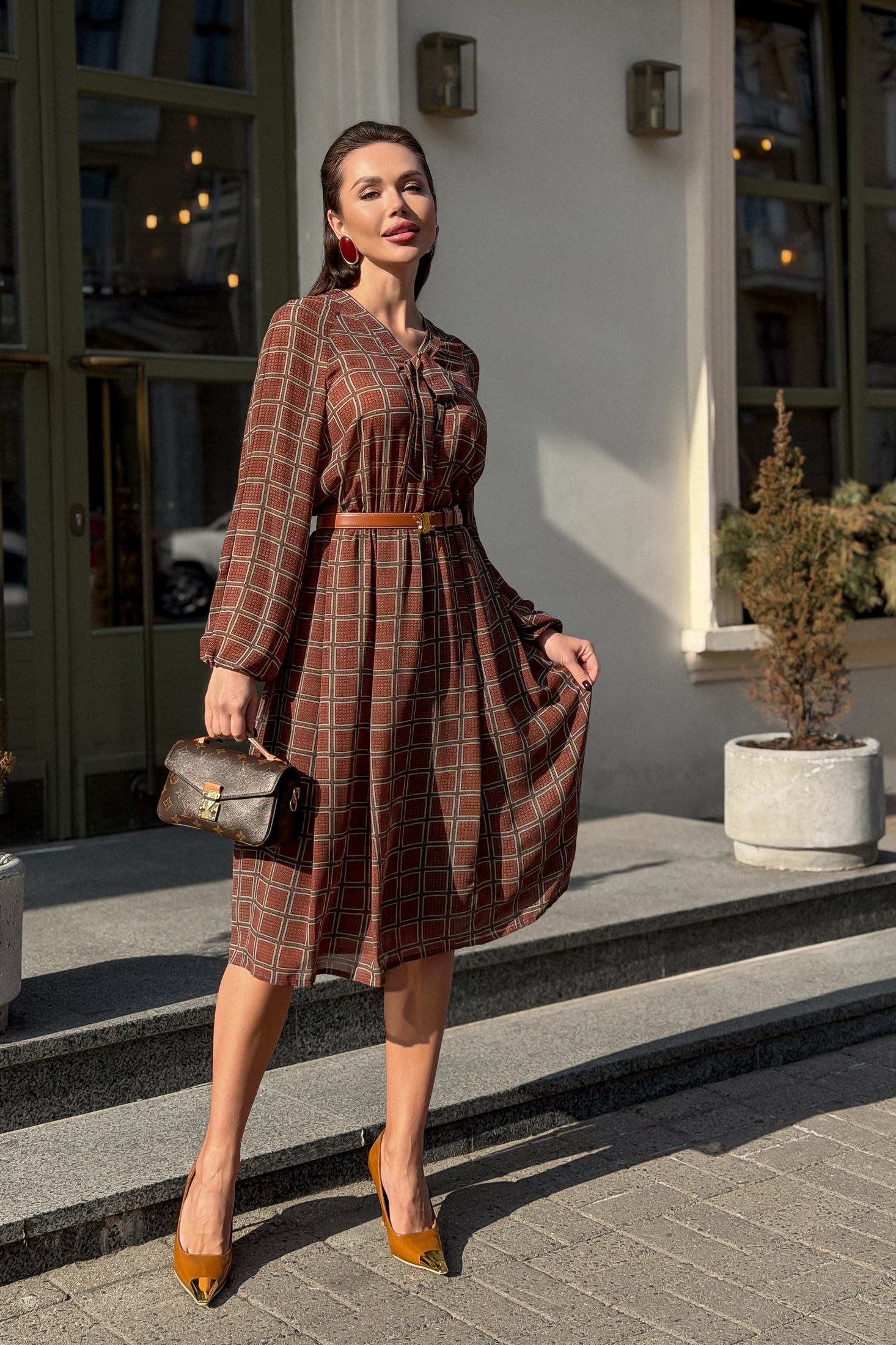 Платье D-024 бордовый от LegendStyle выделяется своей утонченностью и женственностью. Коллекция бренда LegendStyle предлагает изделие из шифона-жоржета, обеспечивающего легкость и воздушность. Длинные пышные рукава «фонарики» на манжетах создают романтический стиль. V-образный вырез с завязками позволяет разнообразить образ. Свободный приталенный силуэт и расклешенная юбка-солнце добавляют свободы движений. Эластичная талия и подкладка из трикотажа поддерживают комфорт. Длина изделия 100 см, что делает его идеальным для весеннего и осеннего сезонов. Бордовый цвет привносит в образ насыщенность и стиль, подходящий для повседневного ношения и праздников.