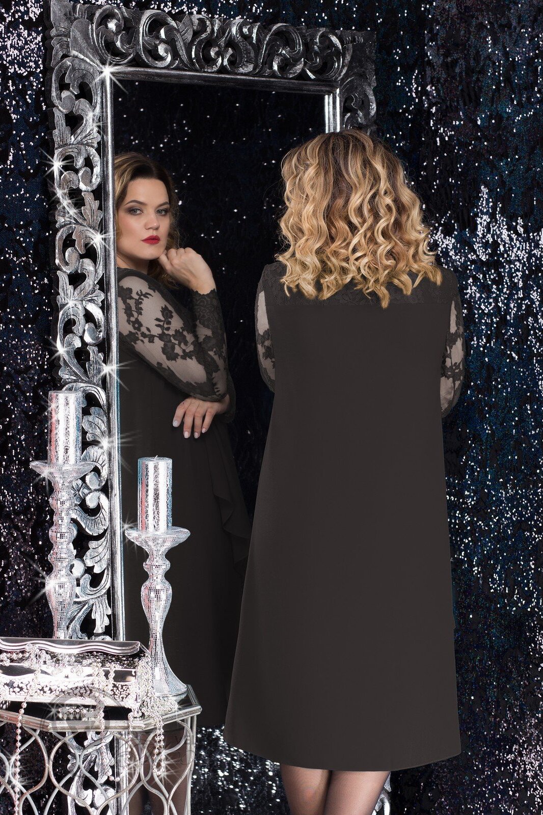 В этом шикарном платье Вы будете чувствовать себя королевой и выглядеть потрясающе на любом самом изысканном мероприятии! Платье женское полуприлегающего силуэта на подкладке из стрейчевого креп-шифона, по переду и спинке кокетка из гипюра. Нижняя часть платья из шифона с отлетной деталью с мягкими складками и сьемной брошью. Вырез горловины круглый, рукав длинный из гипюра. Застежка отсутствует.