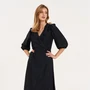 Сарафан А-силуэта. По переду и спинке горизонтальная кокетка, нижняя часть платья со сборкой. На широких бретелях, во внешний шов бретели вставлены воланы-крылышки со сборкой. В боковых швах карманы. Сарафан без подкладки в нижней части.