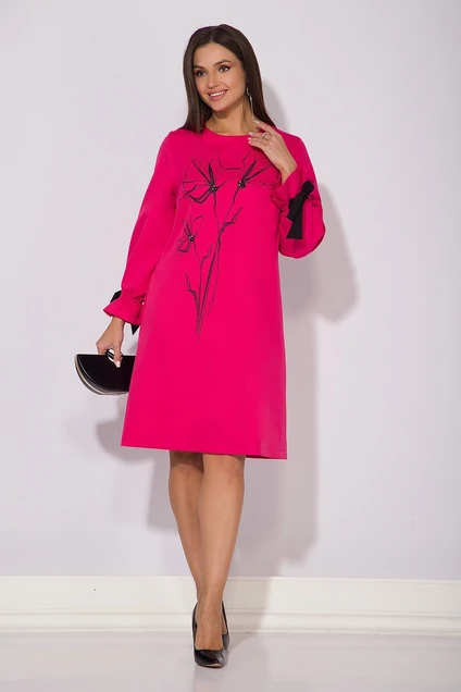 Красивое, эффектное женское платье трапециевидного силуэта, выполнено из плательной ткани насыщенного оттенка. Модель с округлым вырезом горловины, на обтачке. Рукав вточной, длинный с эффектными заложенными складками по низу и завязкой на бант. По бокам расположены прорезные карманы. Изюминкой данной модели служит эффектная спинка с подрезом и завязкой на декоративные летны-бант. Полочку платья украшает декоративная печать накат с украшением из бусин и жемчуга. Платье можно использовать как: нарядное вечернее платье, платье для свидания, на праздник, на 8 Марта, на выпускной, платье для вечеринок и для похода в ресторан, платье для торжественного мероприятия, для деловой встречи. Длина – 104, рукав – 60 см.