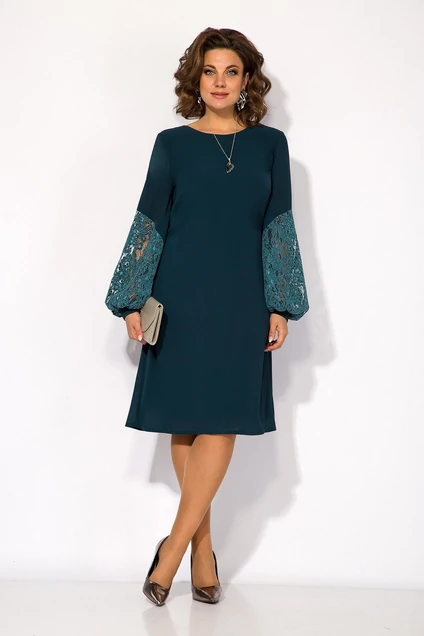 Элегантное, нарядное платье, трапециевидного силуэта в глубоком зеленом оттенке морской волны. Платье трапециевидного силуэта от линии груди. Вырез горловины округлый. Эффектный пышный рукав украшает вставка из сетки с кружевом. Рукав по низу присборен на декоративную резинку. Изюминкой данной модели служит эффектный вырез по спинке, переходящий в бант-завязку! Платье на стрейчевой трикотажной подкладке. Платье идеально подходит на любой тип фигуры, а дизайнерская вышивка является главным акцентом в данной модели. Длина-102 см., рукав – 63 см.
