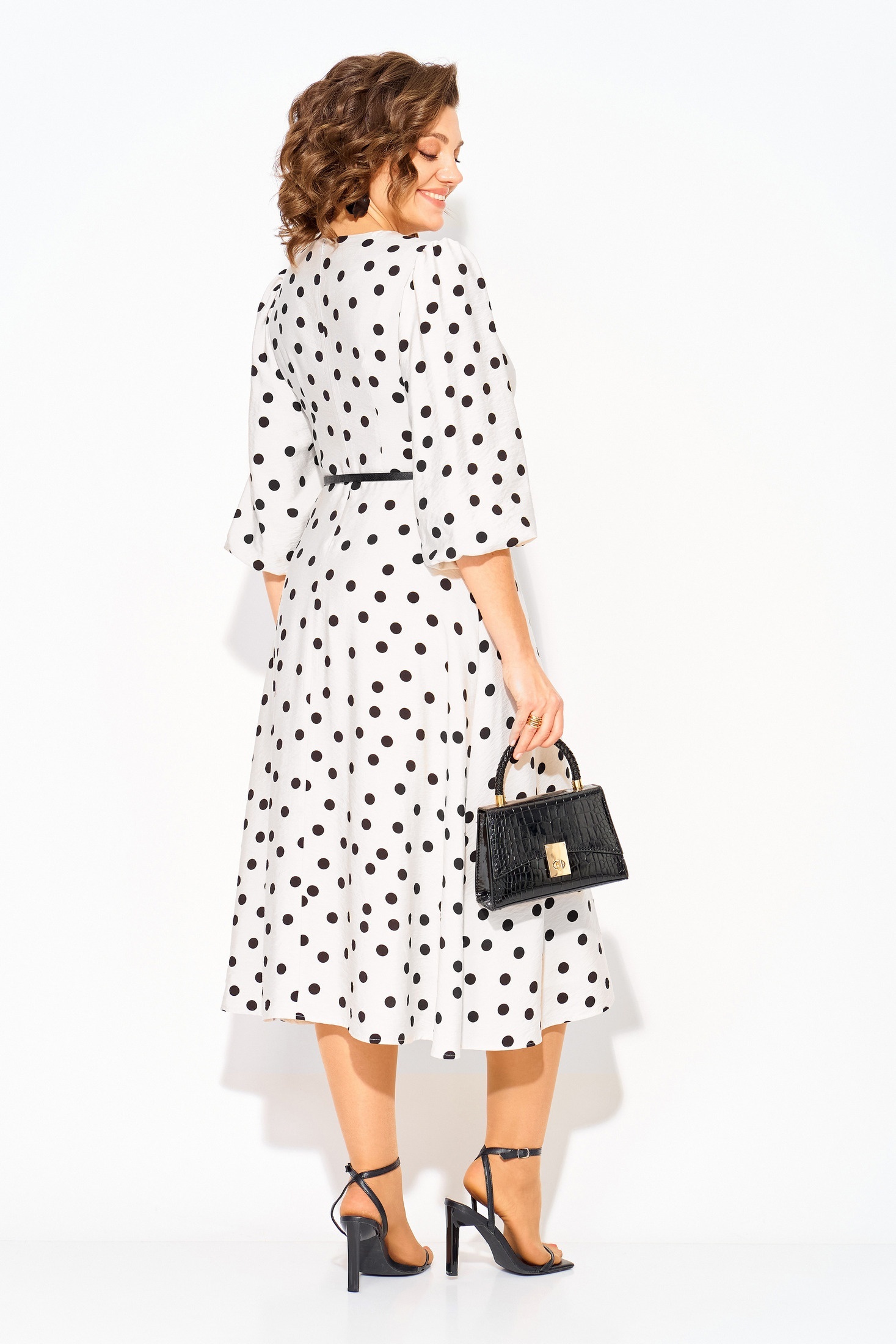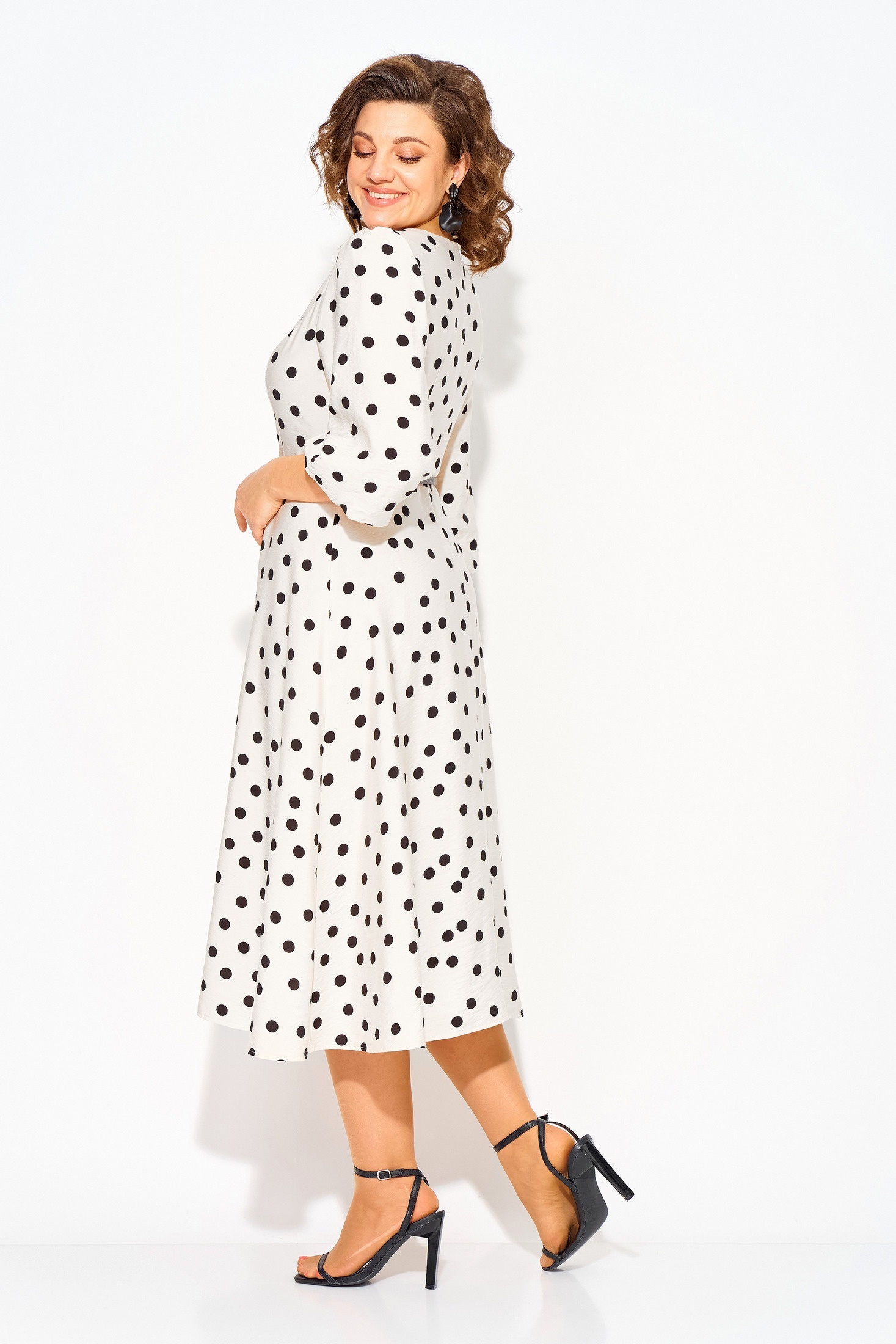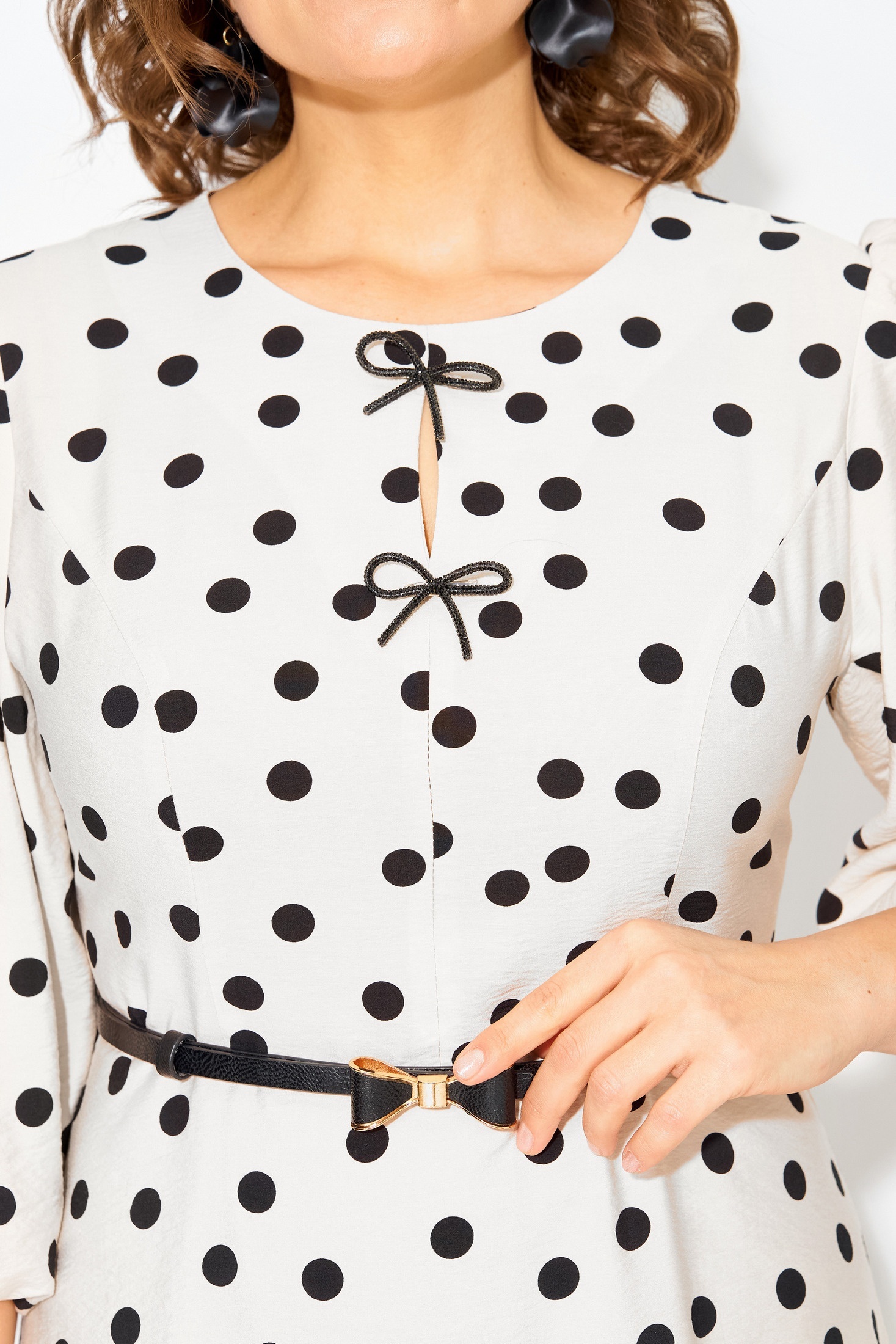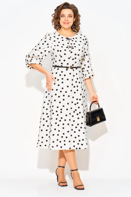 Платье 1511л Liliana-style олицетворяет утонченность и стиль. Коллекция бренда Liliana-style выполнена из легкого вискозного материала, который предоставляет комфорт и свободу движений. Платье с расклешенной юбкой полу солнце и эффектными рукавами-фонариками длиной ¾ – идеальный выбор для весеннего сезона. Чёрный горох на белом фоне придаёт коктейльный стиль, подчёркивая женственность. Съёмные броши в виде банта добавляют игривости и индивидуальности образу. Потайная молния по спинке и длина по спинке 118-120 см завершают образ, делая его подходящим для праздников и вечеринок.