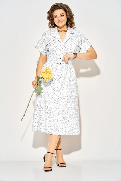 Платье 1521 белый + горох Liliana-style