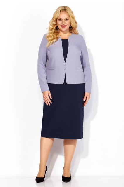 Элегантное повседневное платье, имитирующее двухчастный комплект, идеально подходит для размера на рост 164 см. Платье выполнено в полуприлегающем силуэте, что подчеркивает фигуру с утонченной невидимостью. Встреченное сочетание цветов — спокойный светло-сиреневый и классический темно-синий создают стильный контраст. Фигурный вырез горловины и втачные длинные рукава добавляют изящества образу. Дизайн дополняется нагрудными вытачками спереди, средним швом по спинке с удобной застежкой на молнию и элегантной шлицей. В таком платье легко чувствовать себя комфортно и стильно в любой ситуации.