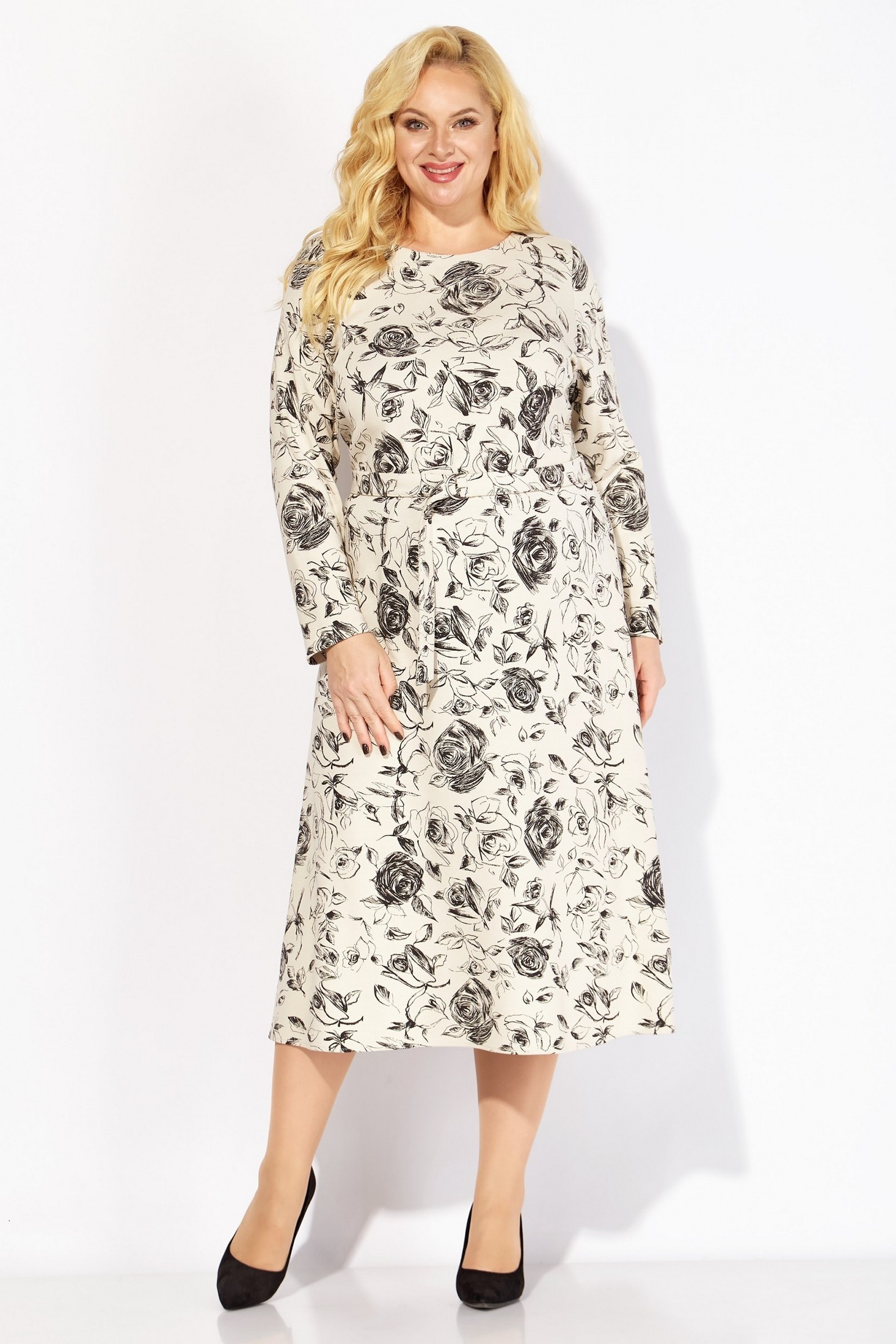 Платье 2098 розы Linia-L сочетает в себе стиль и утонченность. Коллекция бренда Linia-L предлагает повседневное трикотажное платье с выразительным принтом в розы. Выполненное из мягкой вискозной ткани с добавлением полиэстера и спандекса, оно обладает отличной воздухопроницаемостью и эластичностью. Полуприлегающий силуэт до талии с А-силуэтом от линии талии подчеркивается поясом, фиксирующимся на полукольцах. Длинные втачные рукава и круглый вырез горловины добавляют комфорта, а нагрудные вытачки из проймы и средний шов по спинке делают платье идеальным для любого повседневного случая. Цветочный узор делает его отличным выбором для весенне-летнего сезона, а длина миди - подходящим вариантом на каждый день.
