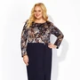 Повседневное платье на рост 164 см полуприлегающего силуэта. В платье сочетается трикотажное полотно (верх) и текстильная ткань (юбка). Вырез горловины круглый. Рукав втачной длинный. Перед платья с нагрудными вытачками из проймы. Спинка со средним швом до талии и талиевыми вытачками. В среднем шве обработана потайная застежка-молния. По переду платья по юбке вертикальные защипы, переходящие в шлицу.