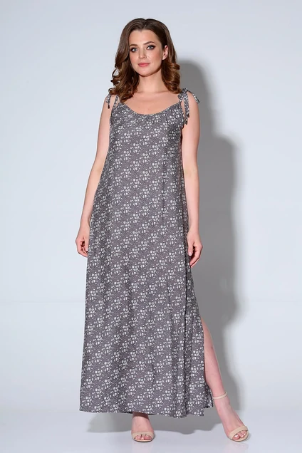 Элегантное длинное платье серого цвета с изысканным цветочным принтом. Особенностью модели является свободный крой с удлиненной спинкой до 135 см, что придает изделию особую грацию и воздушность. Бретели платья декорированы мелкими деталями, что добавляет шарм и утонченность образу. Платье идеально подходит для летнего сезона, подчеркивая непринужденный стиль и женственность.