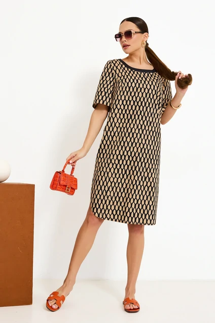 Платье 4912 Lissana — это стильное решение для вашего гардероба. Коллекция бренда Lissana предлагает изделие из 100% хлопка, что обеспечивает комфорт и воздухопроницаемость. Платье приталенного фасона с округлым вырезом горловины и завязкой по спинке идеально подойдет для теплых летних дней. Фигурный низ и карманы в боковых швах добавляют практичности и стильности, а короткие втачные рукава делают образ легким и свежим. Подходит для повседневной носки, работы и отдыха. Платье выполнено в бежевом цвете с геометрическим рисунком, что делает его универсальным вариантом для вашего гардероба.