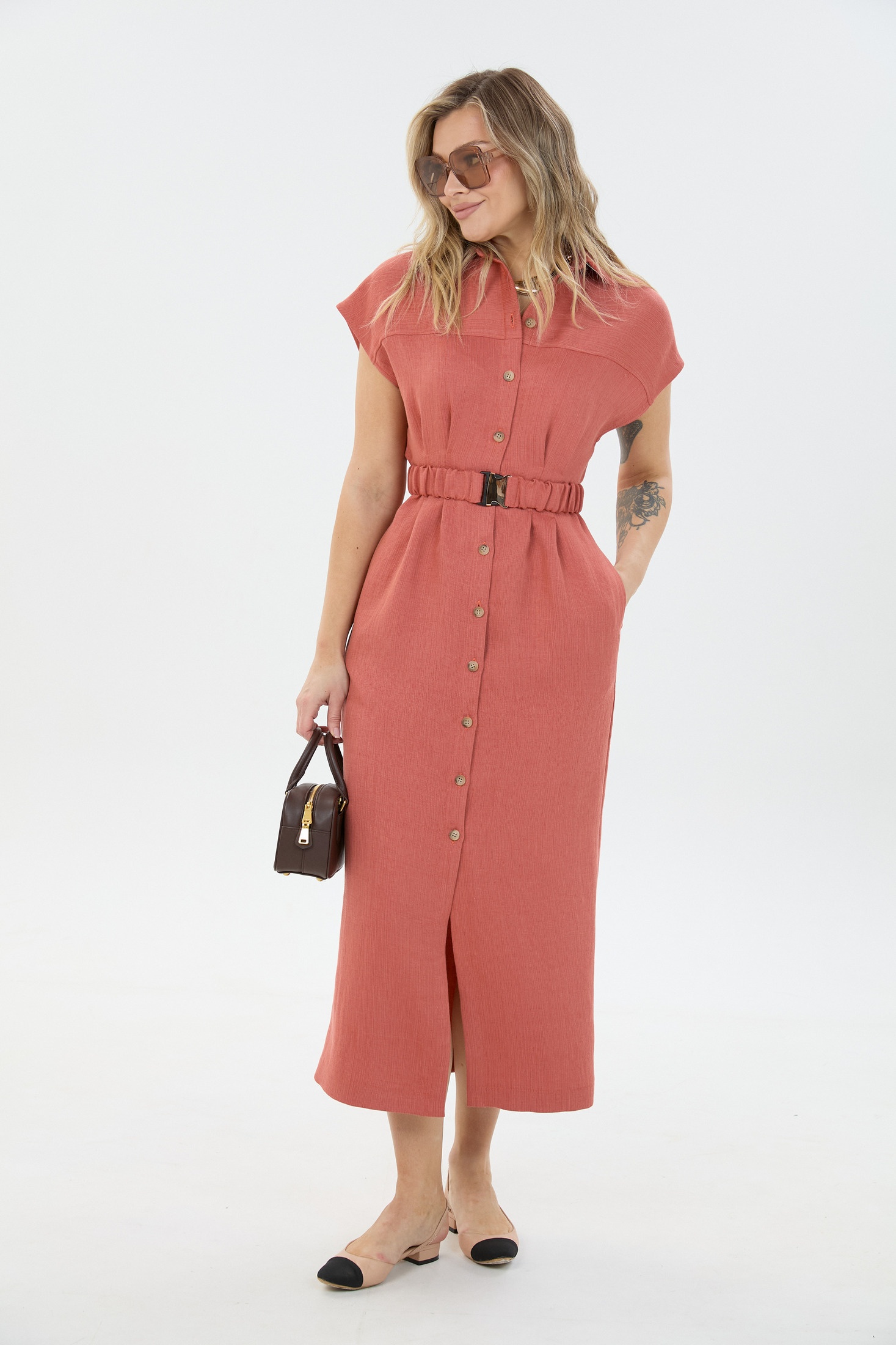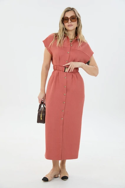 Платье М186 коралл LM (Лаборатория моды) станет отличным дополнением вашего гардероба. Коллекция бренда Лаборатория моды предлагает платье из легкого и дышащего материала с вискозой, что обеспечивает комфорт. Свободного кроя с длиной ниже колена, оно прекрасно подходит для весенне-летнего сезона. Спущенная линия плеча и отложной воротник добавляют элегантности, а застежка на пуговицы с разрезом придает современный вид. Имеется съемный эластичный пояс, который подчеркивает талию. Платье выполнено в коралловом цвете, что освежит ваш образ. Отлично подходит для повседневных прогулок и офисных будней.