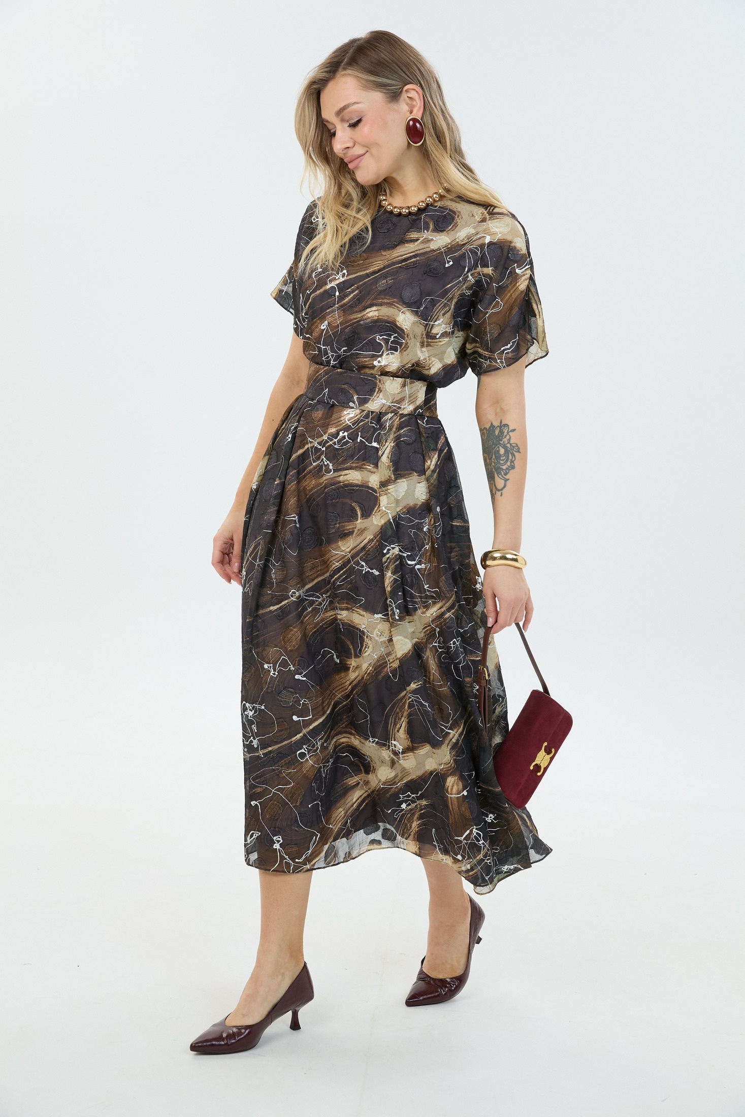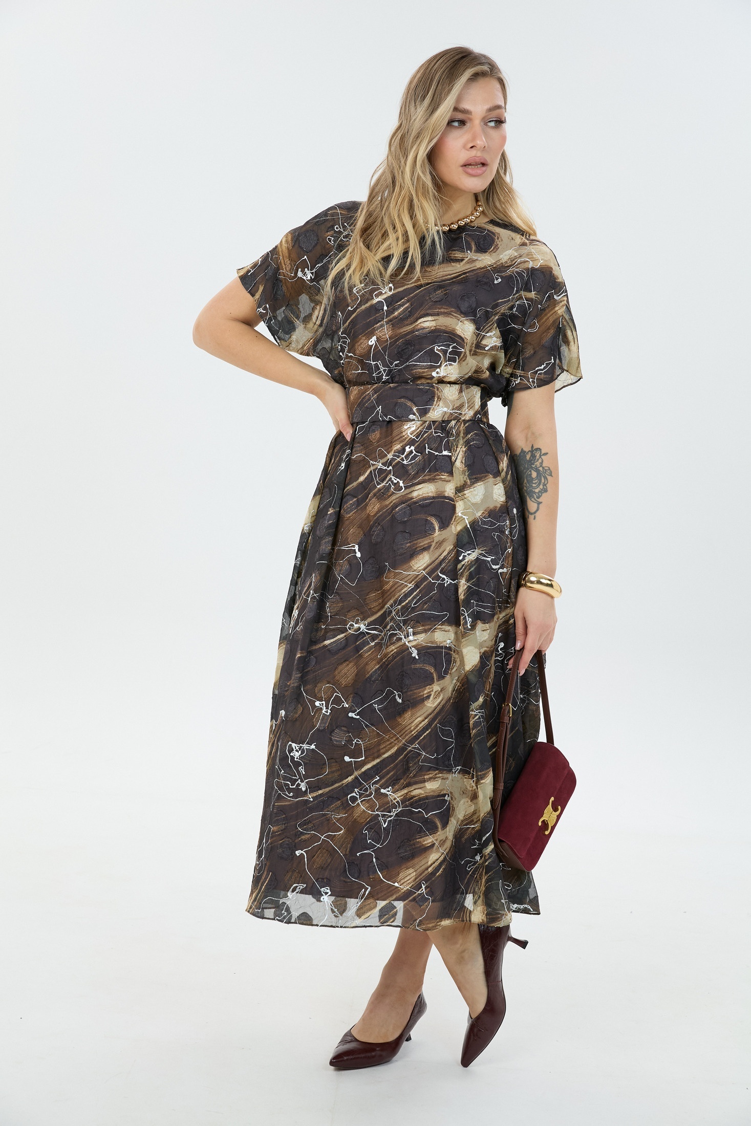 Платье М76 коричневый LM — это сочетание утонченности и комфорта. Коллекция бренда Лаборатория моды представляет изделие длиной миди с объёмной юбкой, выполненное из лёгкой ткани с уникальным принтом. Платье оснащено потайной молнией по среднему шву спинки, что обеспечивает удобство при носке. В комплект входит длинный съёмный пояс, подчеркивающий талию, на юбке предусмотрены складки. Благодаря материалу из 100% полиэстера с подкладкой из вискозы, модель идеально подходит для весенне-летнего сезона и разнообразных мероприятий. Платье в коричневых тонах станет отличным выбором для создания стильного повседневного образа.