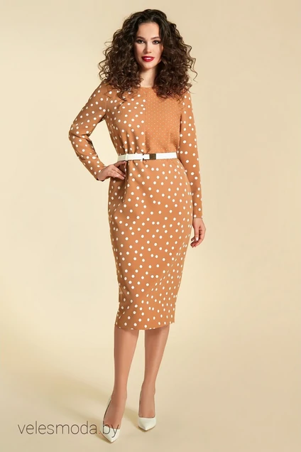 Стильное платье прямого кроя. Выполнено из костюмной ткани со стрейчем. Рукав втачной. Застежка по спинке на молнию. Средний шов заканчивается разрезом. Пояс в комплекте. Длина платья от плечевого шва111см. Длина рукава 61см.