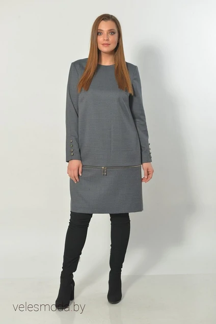 Горловина округлая, слегка углубленная. Перед с нагрудными вытачками и горизонтальным подрезом, расположенным ниже линии талии, в который вставлены две встречные молнии.