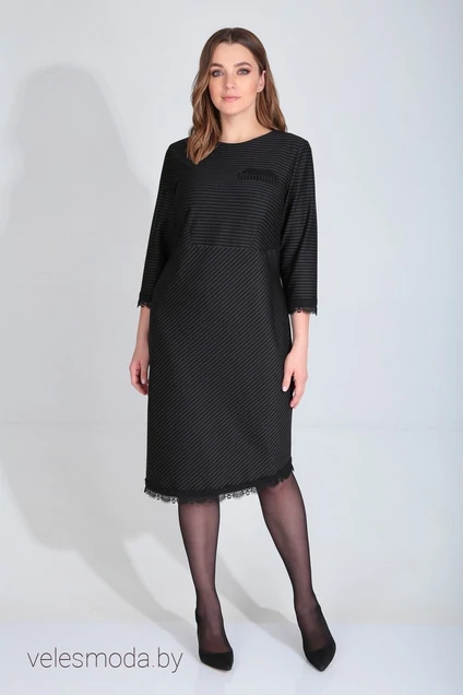 Платье женское прямого силуэта, отрезное по линии талии. Горловина округлой формы.