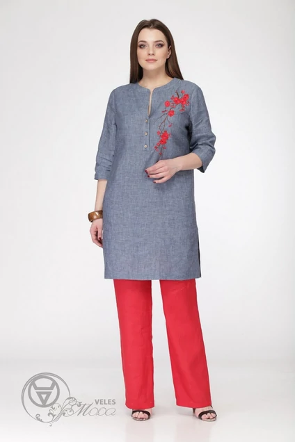 Туника от Мали поможет модницам создать идеальный романтический образ. Прямая свободная туника в сочетании с оригинальной вышивки ветки сакуры -это выражение женственности и трогательности образа. Туника украсит женщину любого возраста, внесет особую изюминку в образ и добавит изысканность и нежность. В комплект к тунике предлагаем брюки от MALI 302 модель.