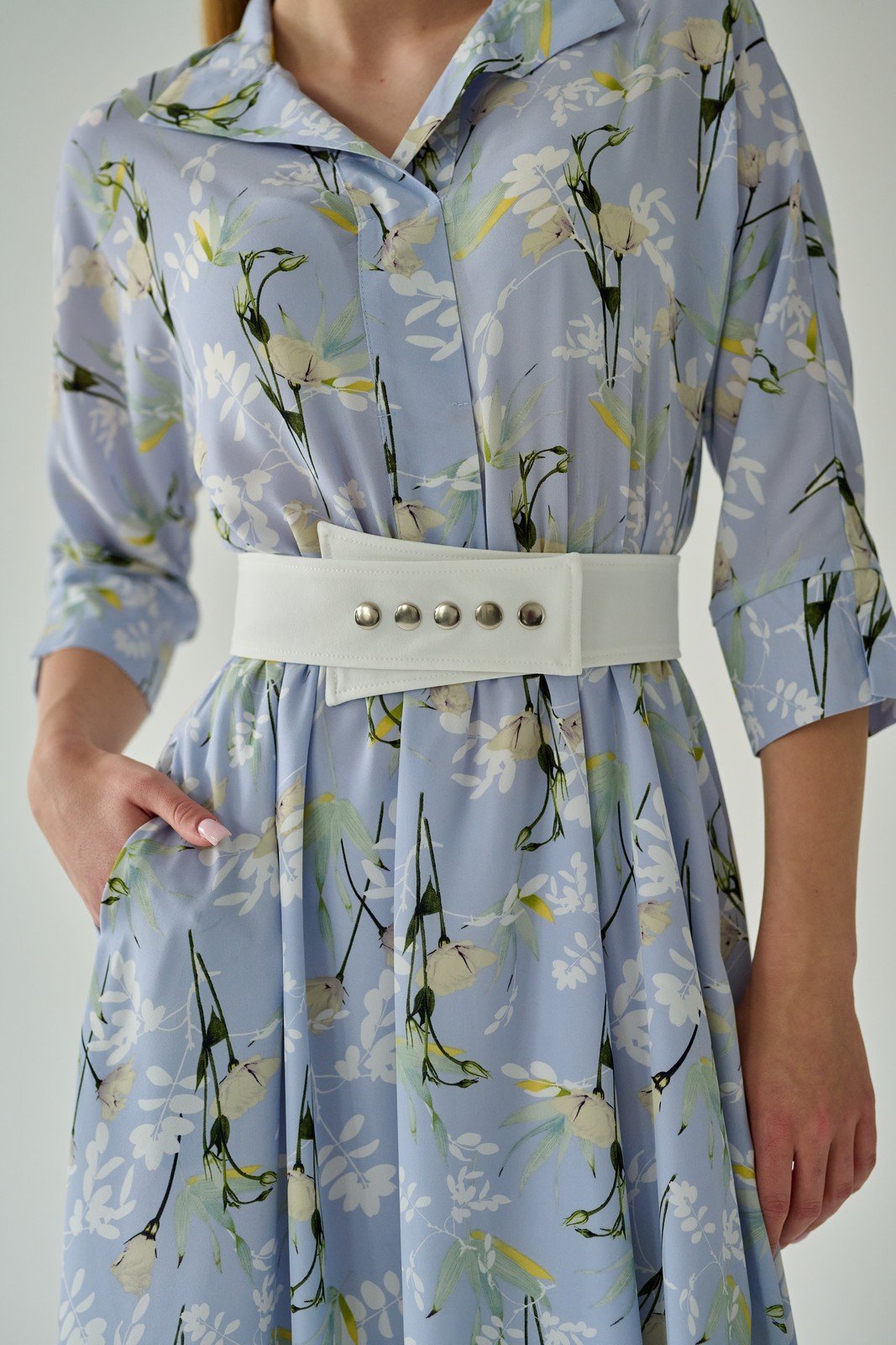 Романтичное платье свободного кроя из крепшифона для неповторимых образов. Притачная планка спереди, имитирующая застёжку, и высокая стойка удлиняют линию декольте, зрительно создавая V-образный вырез. Цельнокроеный рукав летучая мышь, который заканчивается притачной манжетой с кокетливым разрезом, обеспечивает свободу движениям, а длина 3/4 позволяет платью быть уместным в любую погоду и на любом мероприятии. Для комфортной носки в платье предусмотрена подкладка, а по талии - резинка. Для удобства в боковых швах предусмотрены карманы. Весенний цветочный принт, лёгкая ткань, длина миди и асимметричный низ (сзади длиннее) - всё это делает платье универсальным, подходящим для украшения каждого вашего дня! Ткань не выгорает, не мнётся, при этом очень комфортна и удобна в использовании.
