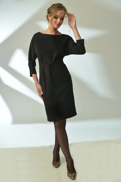Платье полуприлегающего силуэта с цельнокроеным рукавом. Перед цельный. Спинка разрезная с застежкой на потайную тесьму — молния, в низу разрез -15см . Платье со съемным поясом.