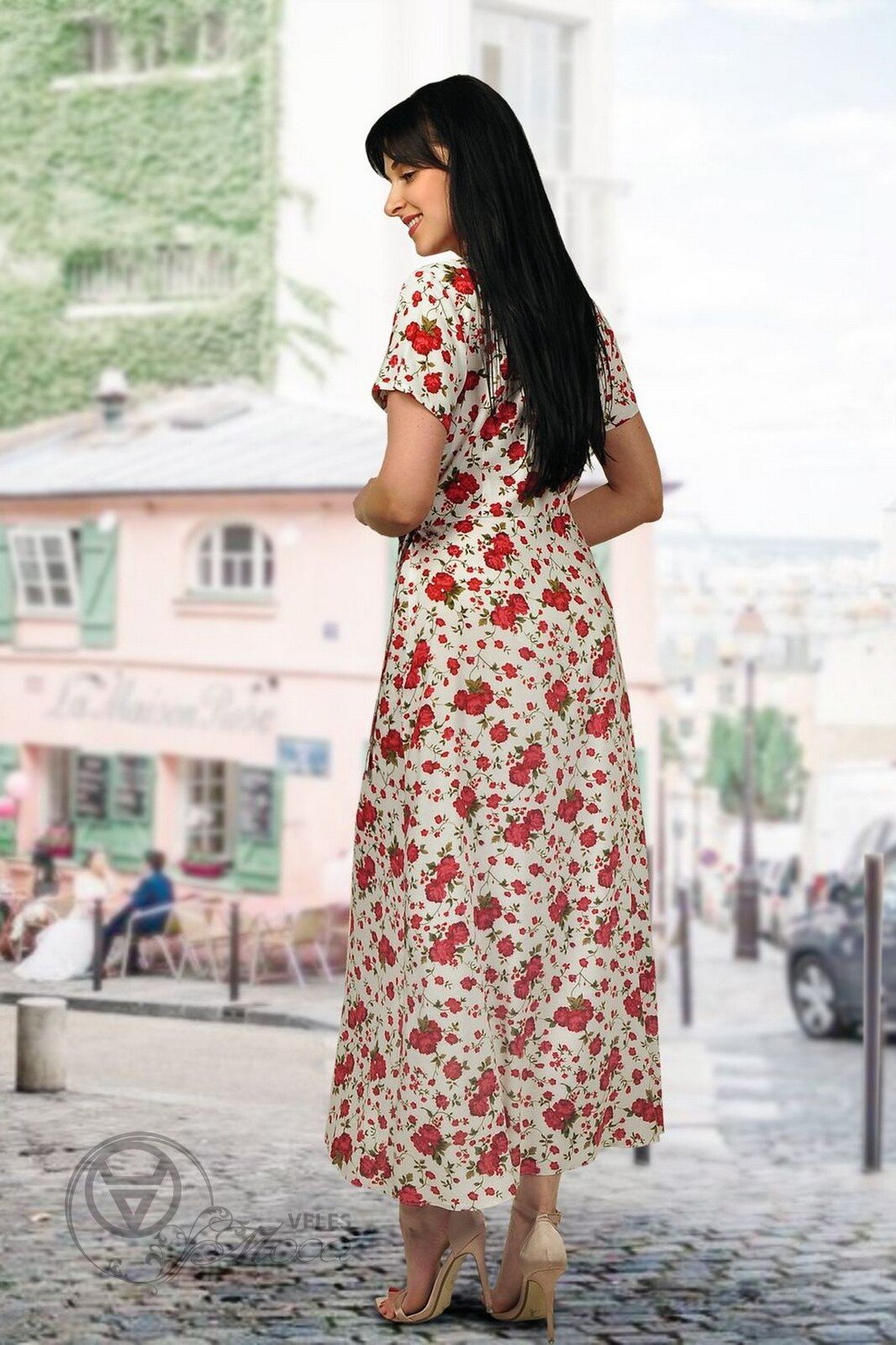 Платье полуприлегающего силуэта .Изделие выполнено из летней текстильной ткани.Состав : ПЭ 65% ,Вискоза 35% (штапель) Длина изделия 134 см , рукав 17 см.Изделие подойдет на рост 164-170 см.