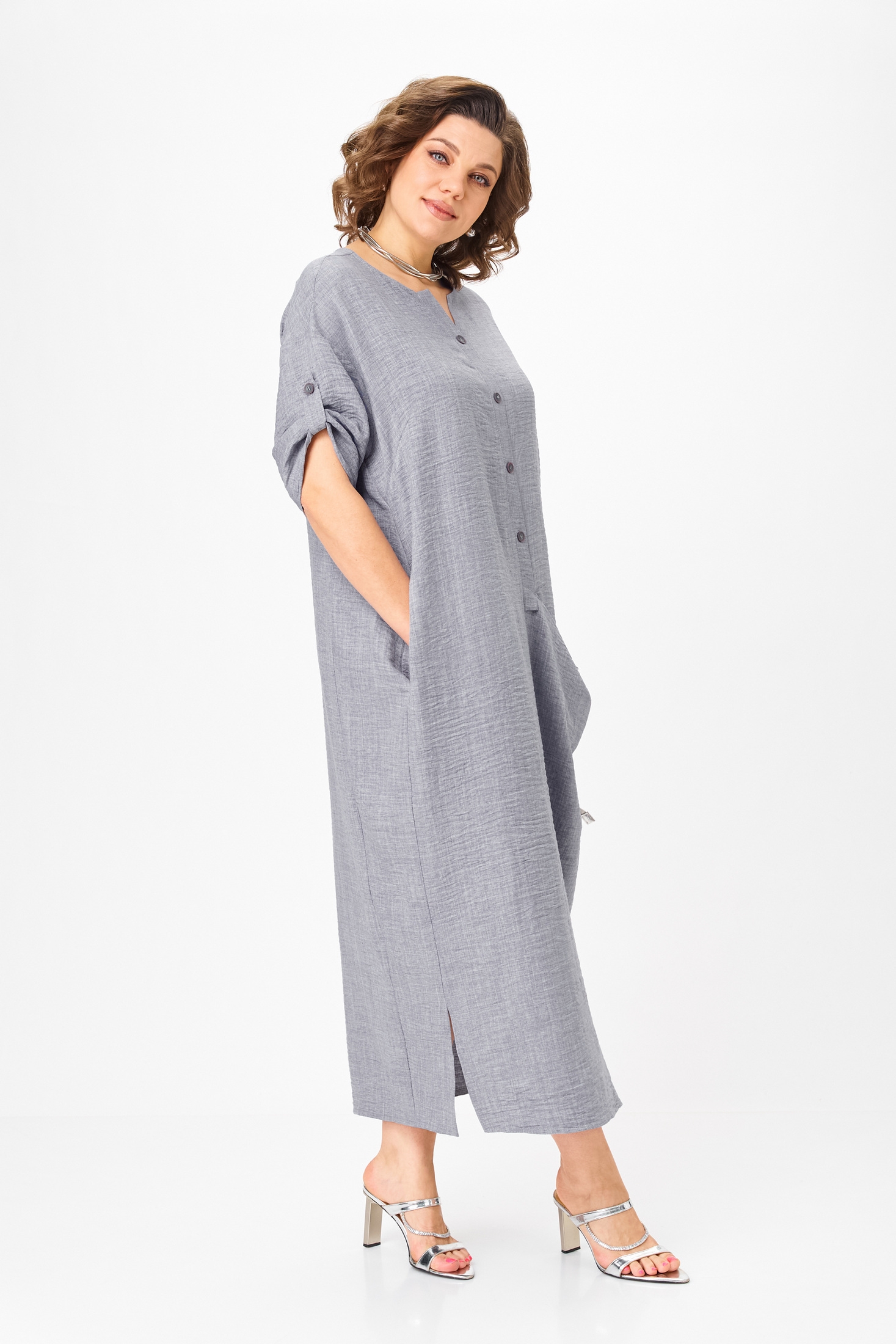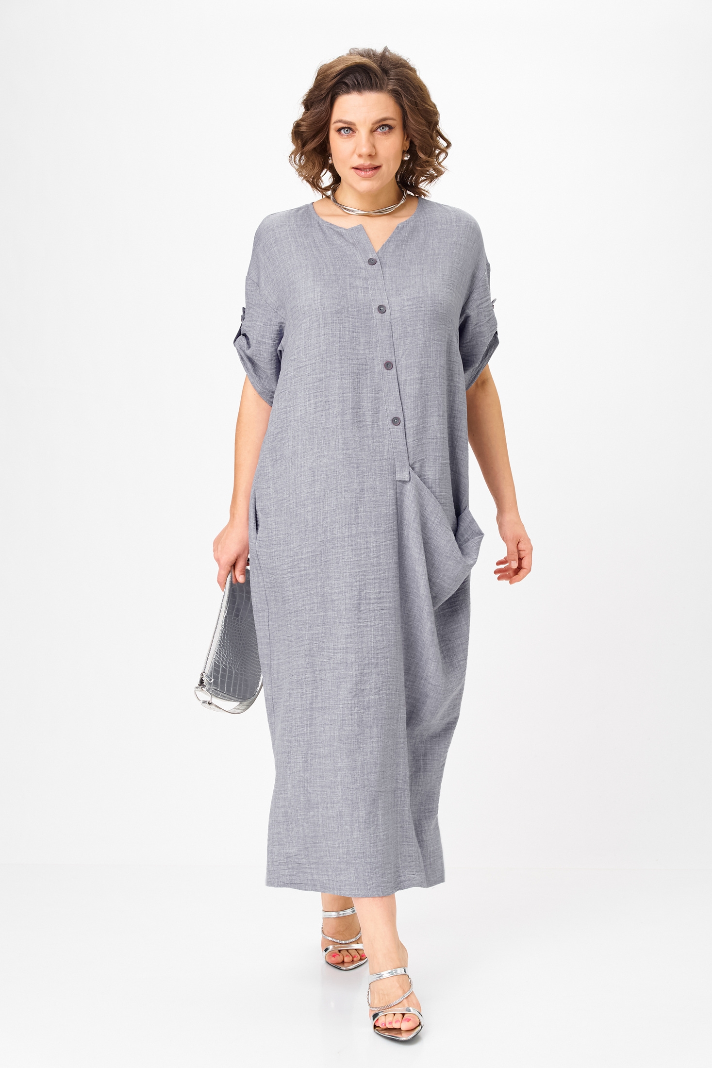 Платье 2094-4 серый кварц Michel Chic представляет собой must-have модель-рубашку «бохо» для современного гардероба. Коллекция бренда Michel Chic предлагает легкое и практичное решение на каждый день. Выполненное из 100% полиэстера с легкой фактурой, оно приятно ощущается на теле и пропускает воздух, сохраняя аккуратный вид. Асимметричная застёжка и навесной карман придают образу статусность и архитектурность. Рукава на пате позволяют регулировать длину, делая платье универсальным. Сочетание серого кварца с универсальной длиной в 128 см по спинке делает платье идеальным для любого времени года и случая – будь то работа, прогулка или вечернее событие.