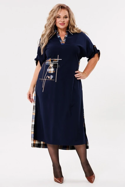 *Платье 2134-1 синий + клетка Michel Chic