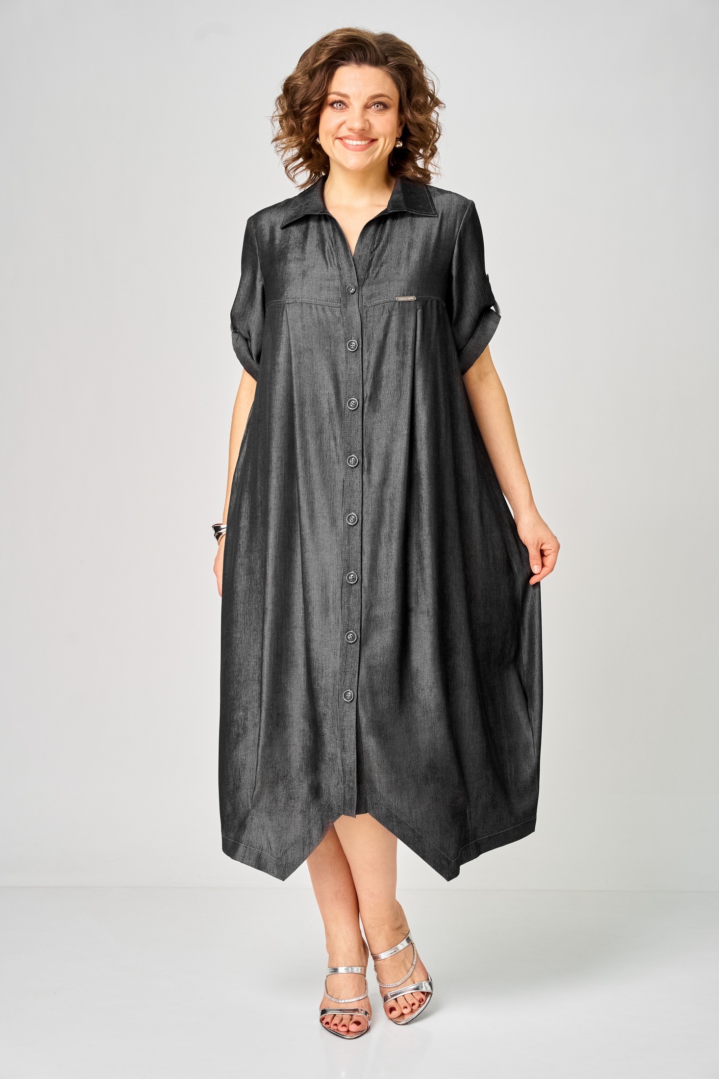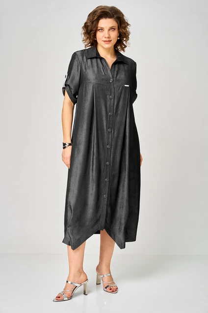 Платье 2198 ночной графит Michel Chic — это платье-рубашка миди из коллекции бренда Michel Chic, выполненное из вискозы с благородным джинсовым оттенком. Свободный крой и асимметричная линия низу делают это платье универсальным, а защипы добавляют аккуратности силуэту. Материал обеспечивает легкость и воздухопроницаемость, идеально подходя для теплого сезона. Платье оснащено застежкой на пуговицах и регулируемым рукавом, который можно носить на полную длину или 3/4, что позволяет создать комфортный образ на каждый день. Цвет ночного графита подчеркивает их стиль и универсальность.