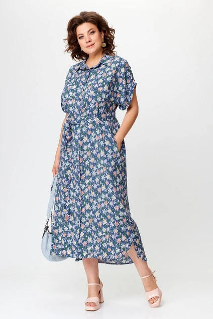 Платье рубашечного типа, свободного кроя выполнено из натуральной вискозной ткани. Универсальность кроя и натуральная ткань сделают его любимым изделием Вашего гардероба в весенне-летнем сезоне. По переду сверху застегивается на пуговицы, снизу сбоку разрез, по спинке длиннее. Рукав короткий цельнокроеный приспущенный на отложенной манжете. Благодаря встречной складке на спинке имеет небольшое клешение. По желанию фиксируется поясом из основной ткани, который идет в комплекте. Длина изделия по спинке от горловины 130 (+/-1) см. Изделие подойдет на рост 170 см.