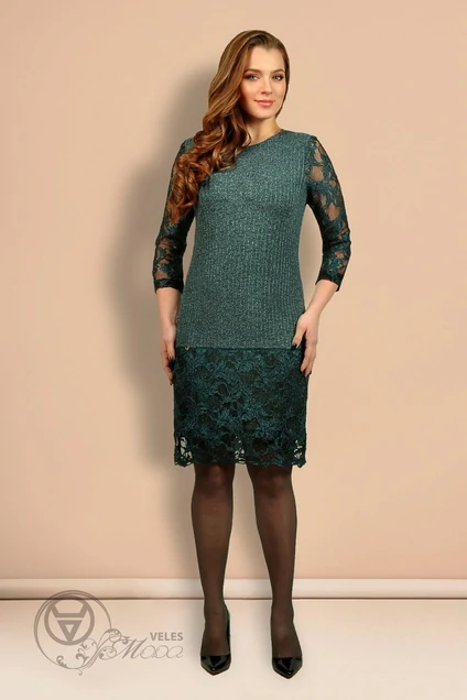 Силуэт платья прилегающий, рукав втачной, длина рукава - 52см. Длина по спинке - 100см. Рукава - кружево. По низу платья настрочено кружево.