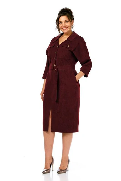 В комплекте к платью идет пояс с пряжкой на два полукольца. Длина рукава от горловины - 62 см, длина платья по спинке - 112 см.