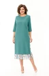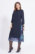 Платье женское прямого силуэта. Рукав втачной. По боковой и нижней части переда и спинки-вставки из отделочной ткани. В среднем шве спинки застёжка на тесьму-молнию. По нижней части переда отделочные пуговицы. Длина по спинке-115см, длина рукава-51см.