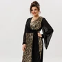 Нарядное платье свободного силуэта выполнено из плиссированной ткани, поставлено на трикотажную подкладку. На полочке обработаны подрезы, края заработаны флешем. Рукав втачной, до локтя, слегка расклешен. Спинка идентична полочке, горловина окантована. Платье декорирована цветком. В этом платье прекрасно скрываются все недостатки фигуры, а благодаря легкости ткани ваш образ будет воздушным и нежным! Длина 118. Длина рукава (в 62р) - 32см, Ширина рукава-23, Ширина груди-64, Ширина бедер-68.