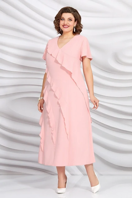 Нарядное, летнее платье, полу-прилегающего силуэта, выполнено из легкого льна-вишера. Горловина V-образной формы, на обтачке, по переду выполнены ассиметричные подрезы с вставками воланов из основной ткани что придает платью динамичности и скрывает все нюансы фигуры. Спинка со средним швом и полу-рельефами, в среднем шве потайная молния, рукав втачной, укороченный, все платье на трикотажной подкладке. Изюминкой этого платья является крой и воланы, это придаст вашему образу неповторимости, вы точно не останетесь незамеченной на любом мероприятии! Длина 129 см.