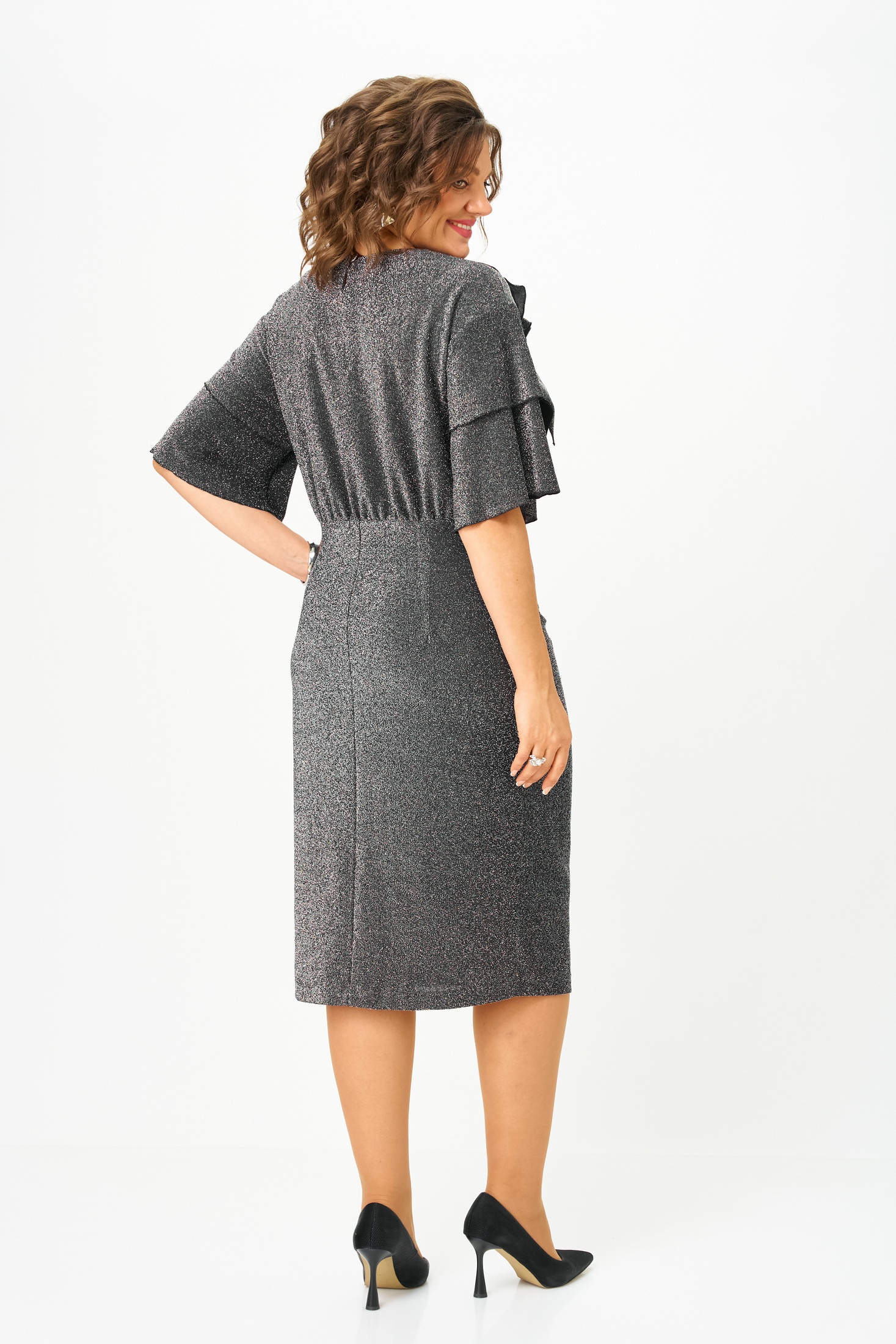 Платье 5628 Mira Fashion пленяет взгляд своим элегантным дизайном. Коллекция бренда прекрасно сочетает в себе изысканность и комфорт, подчёркивая вашу женственность. Изготовлено из трикотажного полотна с люрексом, что придаёт ткани лёгкий блеск и эластичность. Прямой силуэт и отрезной лиф с декором в виде цветка создают утончённый образ. Укороченные, расклешённые рукава с двумя воланами добавляют динамики и игривости. Это нарядное платье станет идеальным выбором для вечеринок и праздничных мероприятий. Его универсальный серый цвет позволяет комбинировать с различными аксессуарами и обувью.