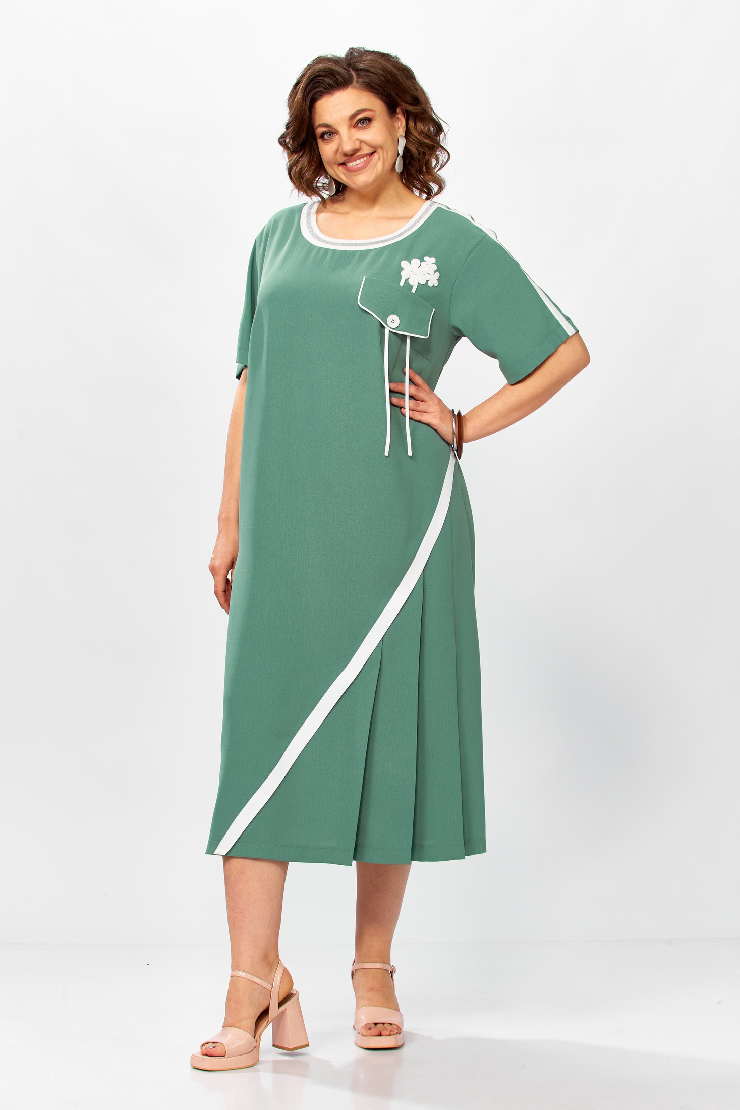 Платье 5669 Mira Fashion от коллекции бренда Mira Fashion — идеальный выбор для летнего сезона. Это женственное миди платье свободного кроя выполнено из льна-вишера, обеспечивая комфорт и легкость. Округлая горловина дополнена контрастной отделкой, придающей стильный акцент. На лифе располагается накладной карман с декоративным элементом в цветочном стиле. Ассиметричный подрез с односторонними складками и контрастной планкой подчеркивает уникальность дизайна. Укороченные рукава с контрастной планкой, переходящей на плечо, добавляют изысканности. Легкое платье в спортивном стиле подходит как для повседневной носки, так и для спортивных мероприятий. Общая длина изделия составляет 116 см, а длина рукава — 23 см, ширина груди — 61 см, что делает его универсальным выбором для различных образов.