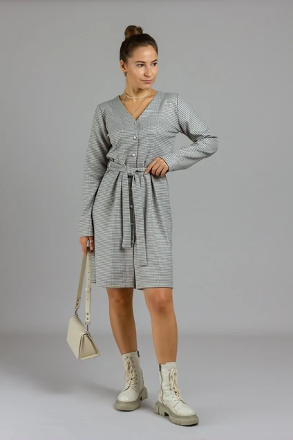 Удобное осеннее платье на пуговицах, удобное и приятное к телу. По переду нагрудные и талиевые вытачки, переходящие во встречные складки на юбке. Рукав длинный .Платье отрезное по линии талии с поясом.