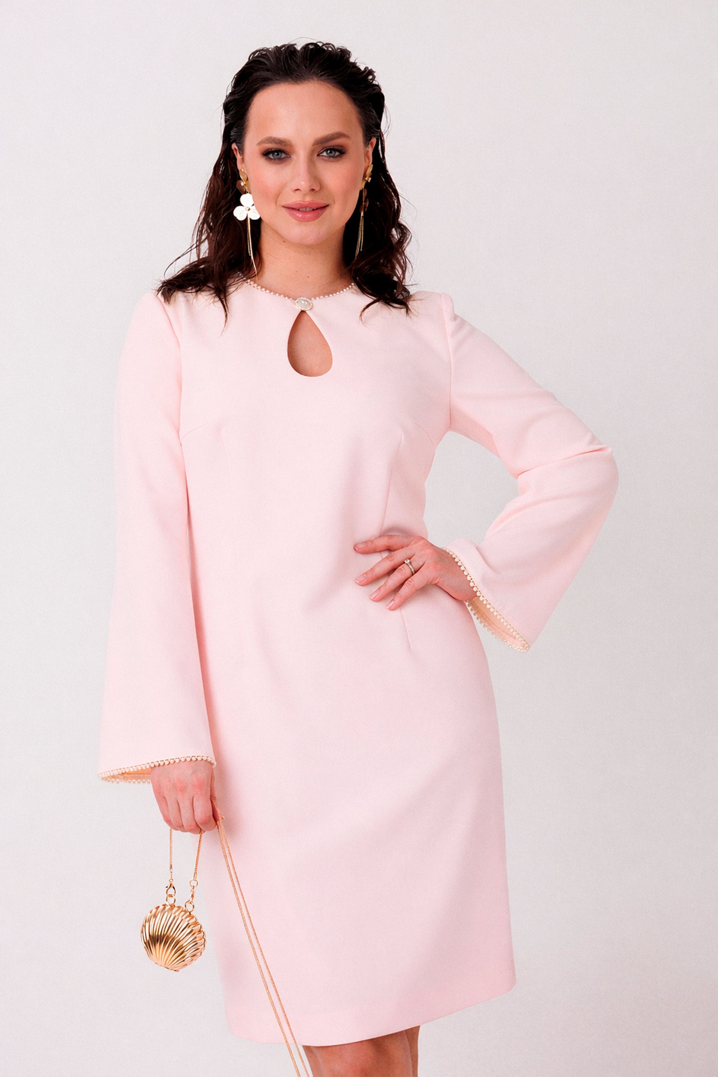 Платье 1304 розовый MisLana — стильный выбор для уверенных в себе женщин. Коллекция бренда MisLana предлагает элегантное платье-футляр, выполненное из плотной плательной ткани с добавлением вискозы, что обеспечивает комфорт и легкость в носке. Приталенный силуэт подчеркивает фигуру, а декоративная бейка с жемчужным оформлением на горловине и манжетах добавляет утонченности. Центральная пуговица-застежка создает эффектный вырез-капель. Это платье идеально подойдет для осенних и весенних деловых встреч и официальных мероприятий. Розовый цвет подчеркивает женственность, делая образ свежим и современным.
