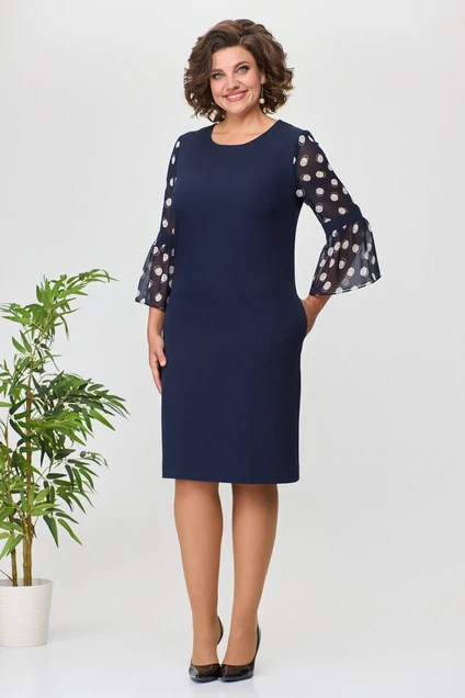 Основная ткань-плательная, рукав-шифон. Платье женское полуприлегающего силуэта, без подкладки, тесьма-молния в среднем шве спинки. Перед с нагрудными вытачками. Спинка со средним швом, переходящим в шлицу, талиевые вытачки. Рукав одношовный втачной, с вставкой и воланом. Горловина переда и спинки обработана обтачкой.