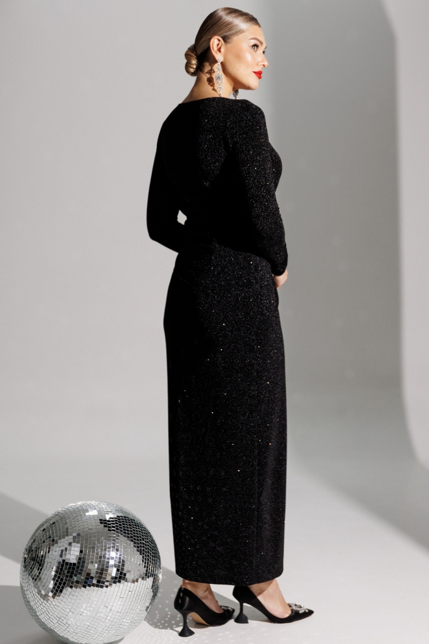 Блеск софитов, огни салютов, игривые пузырьки в бокале - и Ваше сияние обеспечено нашим вечерним платьем! Это действительно озорно, игриво, празднично! И, как ни крути, приковывает взгляды! Представленное платье приталенного силуэта. Спинка с талиевыми вытачками. Перед отрезной по линии талии. Лиф с эффектным V-образным вырезом и узлом в области талии. Юбка на запах. Рукав полуреглан, присборенный на резинку в нижней части (по шву). Платье на подкладке. Материал платья - тонкий трикотаж с блеском. Хорошо тянется. длина рукава (полуреглан): 68 см