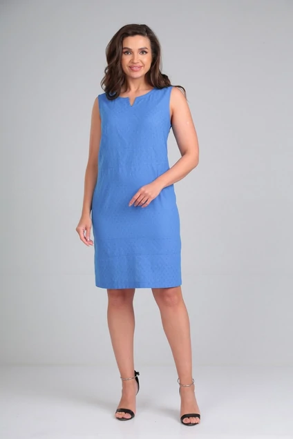 Элегантное женское платье полуприлегающего силуэта, выполненное из хлопка «Ришелье» (не тянется). По переду отрезной пояс, нагрудные вытачки, горизонтальные подрезы. По спинке средний шов, отрезной пояс, в нижней части – разрез. Горловина округлой формы с мысиками по переду. Нижняя часть платья на хлопковой подкладке.