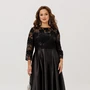 Нарядное платье полуприлегающего силуэта, выполненное из струящегося шелка «Армани» (немного тянется), без подкладки. По переду нагрудные вытачки. По спинке средний шов с застежкой на навесную петлю-пуговицу. Горловина округлой формы. Рукава втачные одношовные со сборкой по окату, встречной складкой и отделочной пуговицей по низу. Низ платья оформлен двумя присборенными воланами, края которых обработаны специальной тесьмой для придания формы изгибов воланам ( тесьма мягкая, подвижная).