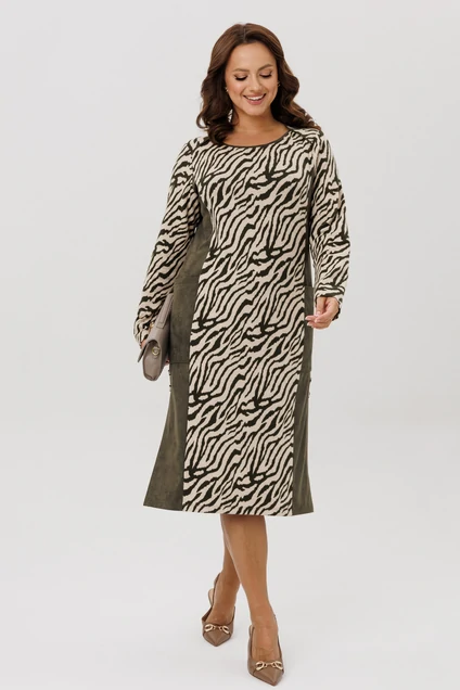 Цвет: зебра бежево-зеленая. По бокам платья вставки хаки (олива).