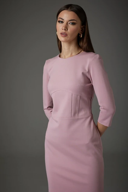 Платье женское приталенного силуэта, втачного покроя. Выполнено из трикотажного полотна.