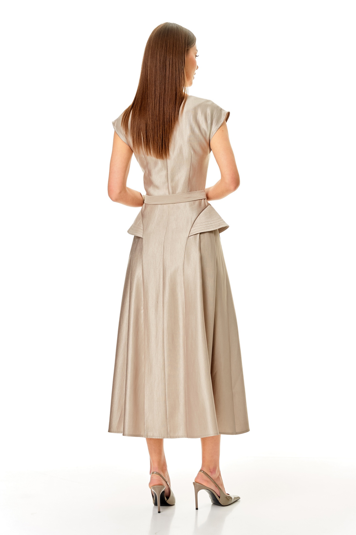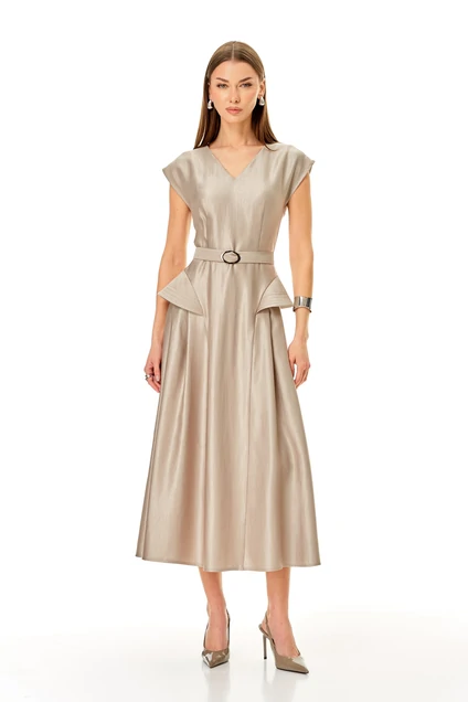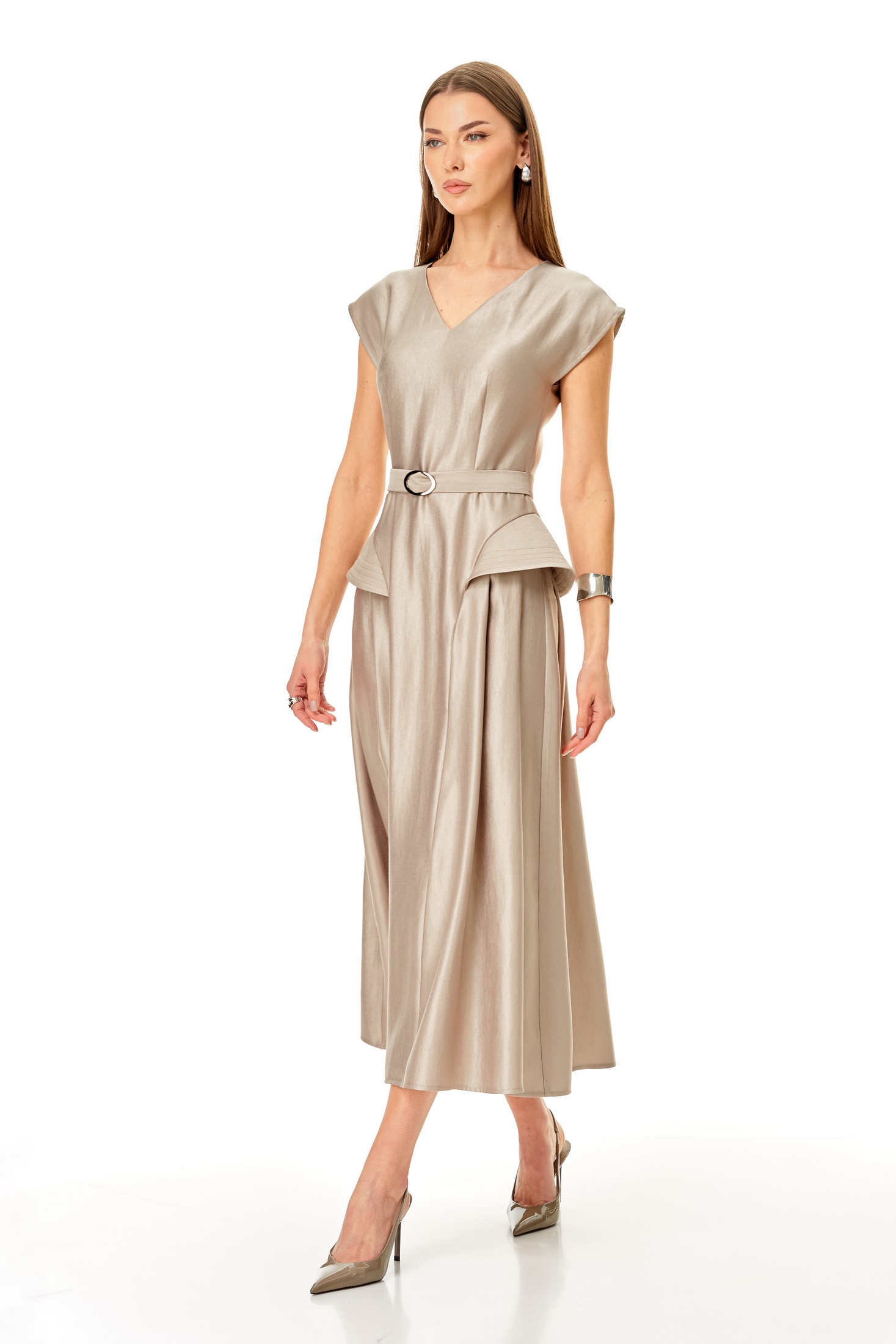 Платье 1682 N.O.W. — это стильное решение, подчеркивающее вашу индивидуальность. Коллекция бренда N.O.W. предлагает приталенное платье, выполненное из качественной ткани с высоким содержанием вискозы, что делает его приятным на ощупь и долговечным. У-образный вырез и спущенные плечи придают изделию особую женственность, а скрытая молния на спинке обеспечивает удобство при надевании. Платье миди длины с поясом и расширенными крыльями на подрезах идеально подходит для весенне-летнего сезона и торжественных мероприятий. Его бежевый цвет легко комбинируется с аксессуарами, создавая гармоничный образ. Длина по среднему шву спинки составляет 126 см, а ширина поясного ремня 3 см.