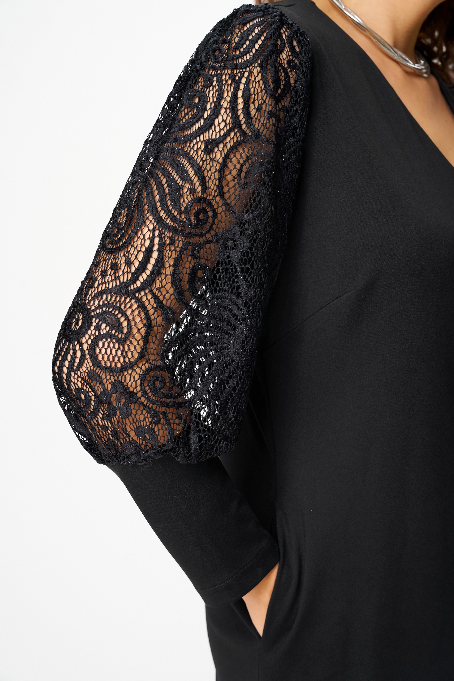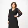 Платье 060120 черный Nika.pl — универсальное миди-платье, которое станет отличным решением для стильного гардероба. Коллекция бренда Nika.pl предлагает изысканный выбор для тех, кто ценит качество и комфорт. Изготовлено из прочного и мягкого гипюра с блеском, платье обладает прямым силуэтом и эффектной V-образной горловиной. Длинные втачные рукава с широкой манжетой добавляют шарм и обеспечивают комфорт. Удобные боковые карманы делают его практичным выбором для офисных будней и вечерних выходов. Черный цвет и элегантный дизайн позволяют носить его как на работу, так и на праздники и вечеринки в любое время года.