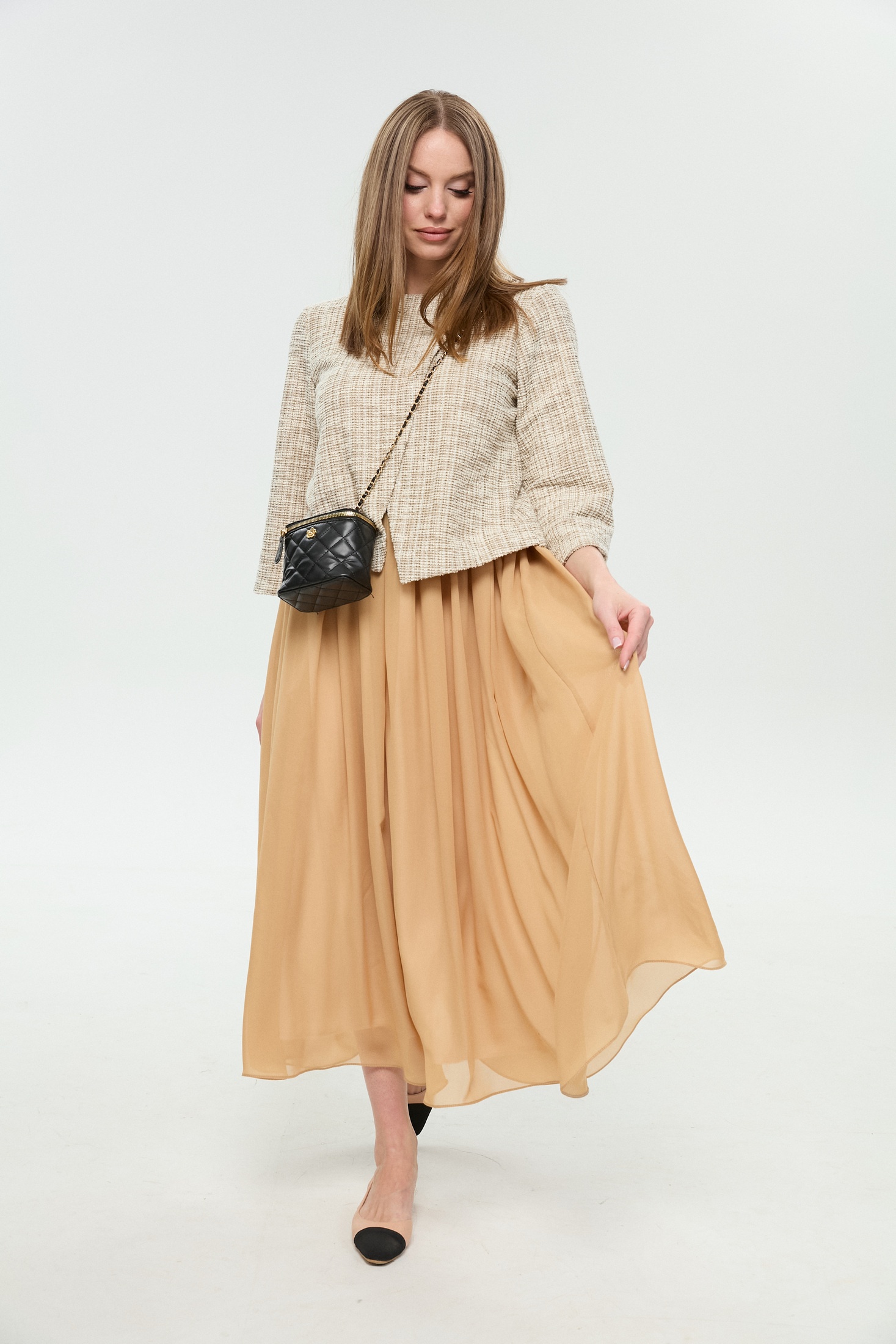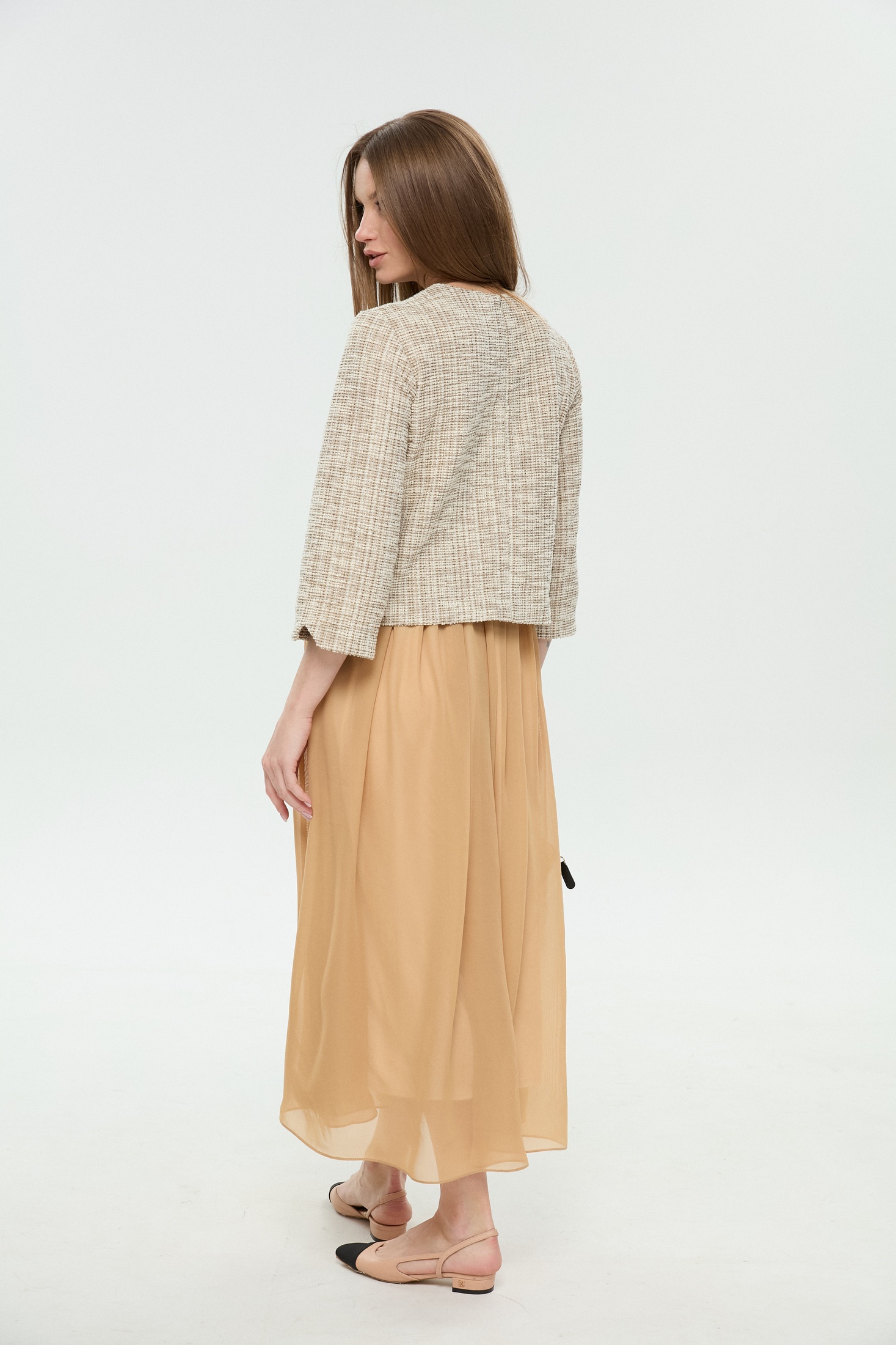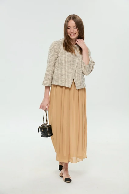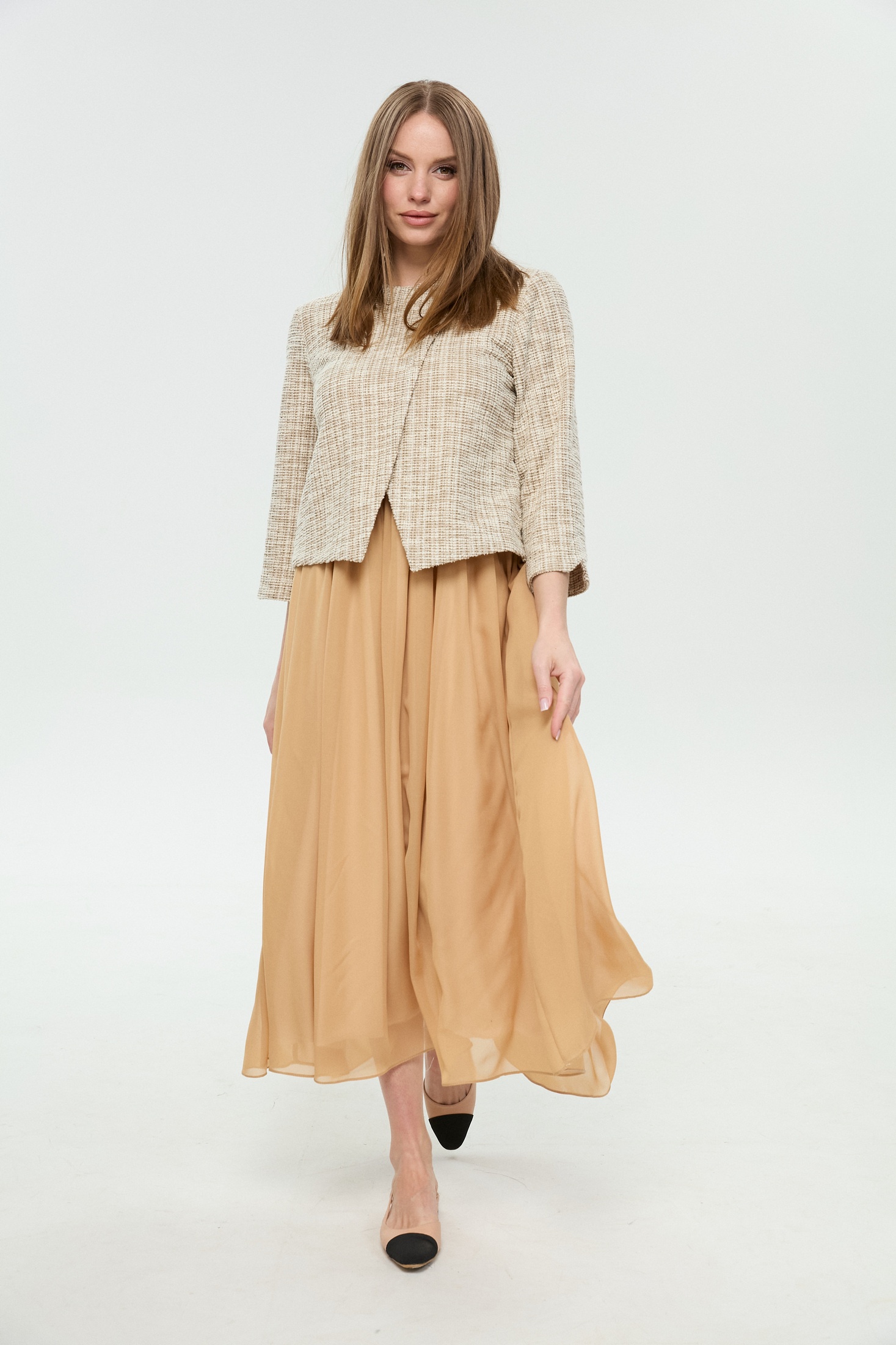 Платье 1007-4 NikVa от коллекции бренда NikVa — это утонченное макси-платье, выполненное в двухцветной комбинации. Верх из хлопкового материала с добавлением полиэстера и спандекса обеспечивает комфорт и легкую посадку, а юбка из шифона создает воздушный и женственный вид. Лиф с эффектом запаха придает образу элегантность, в то время как полукруглый вырез горловины обеспечивает классический акцент. Задняя молния упрощает надевание, а юбка на резинке с драпировкой добавляет объем. Платье идеально подходит для осенне-весеннего сезона и станет отличным выбором для праздника или важного события. Цветовая гамма позволяет легко сочетать его с различными аксессуарами.