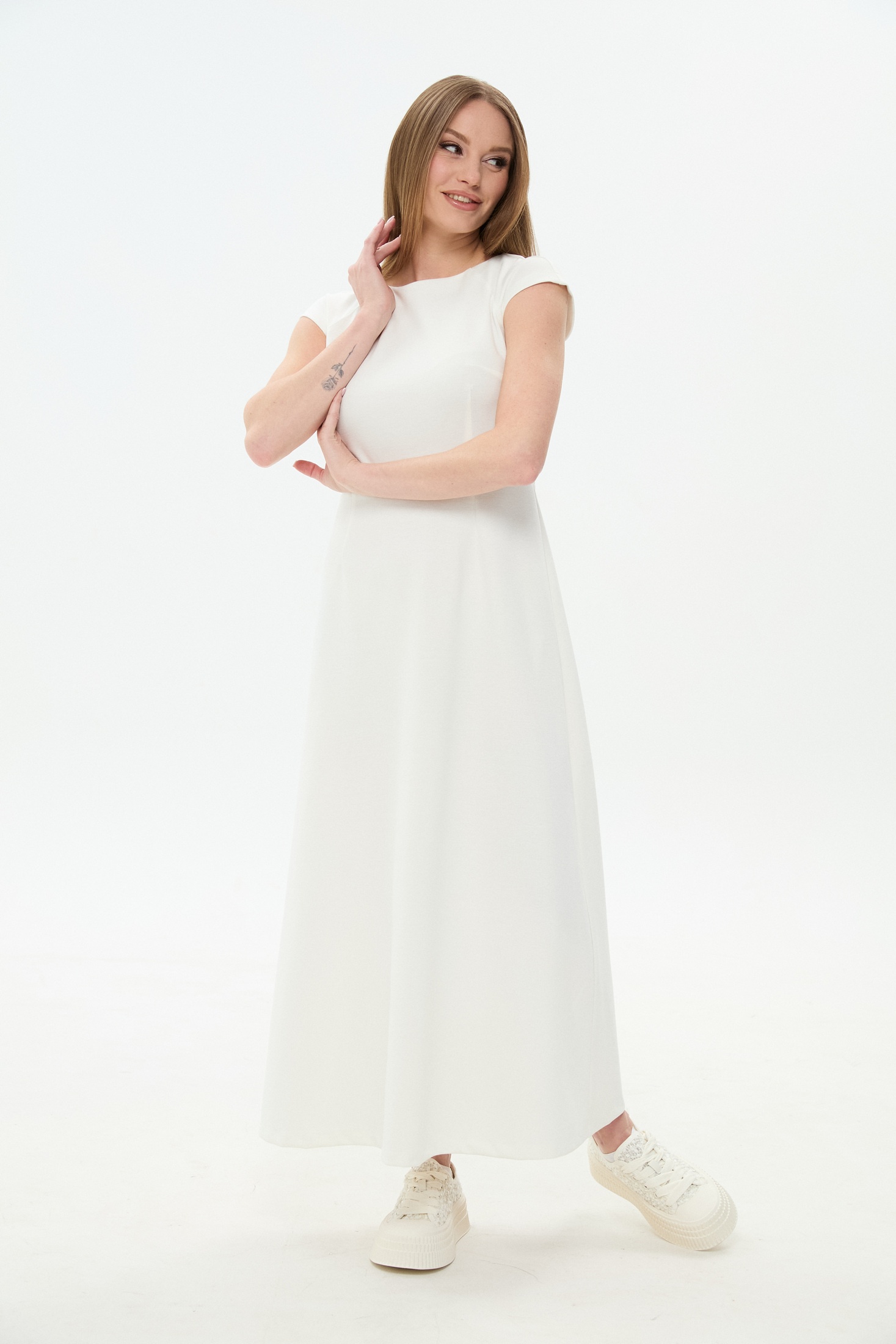 Платье 1034-1 NikVa — это изящный вариант для вашего гардероба. Коллекция бренда NikVa предлагает данное платье миди длины, которое выделяется своей приталенной формой с лёгким расклешением в нижней части. Изготовленное из мягкого трикотажного материала с 95% хлопка, оно приятно к телу и обладает отличной растяжимостью благодаря эластану. Платье отлично подходит для тёплого сезона, создавая комфорт и стиль для ежедневного ношения или офисной обстановки. Белый цвет придаёт образу свежести и лёгкости, а потайная молния на спинке обеспечивает удобство и эстетическую цельность дизайна.