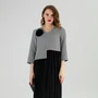 Платье макси комбинированное, двухцветное. Лиф фигурный. Вырез горловины полукруглый, по спинке затежка на молнию. Рукава втачные, собраны на резинку. Юбка на резинке, драпирующаяся, расширенного силуэта.