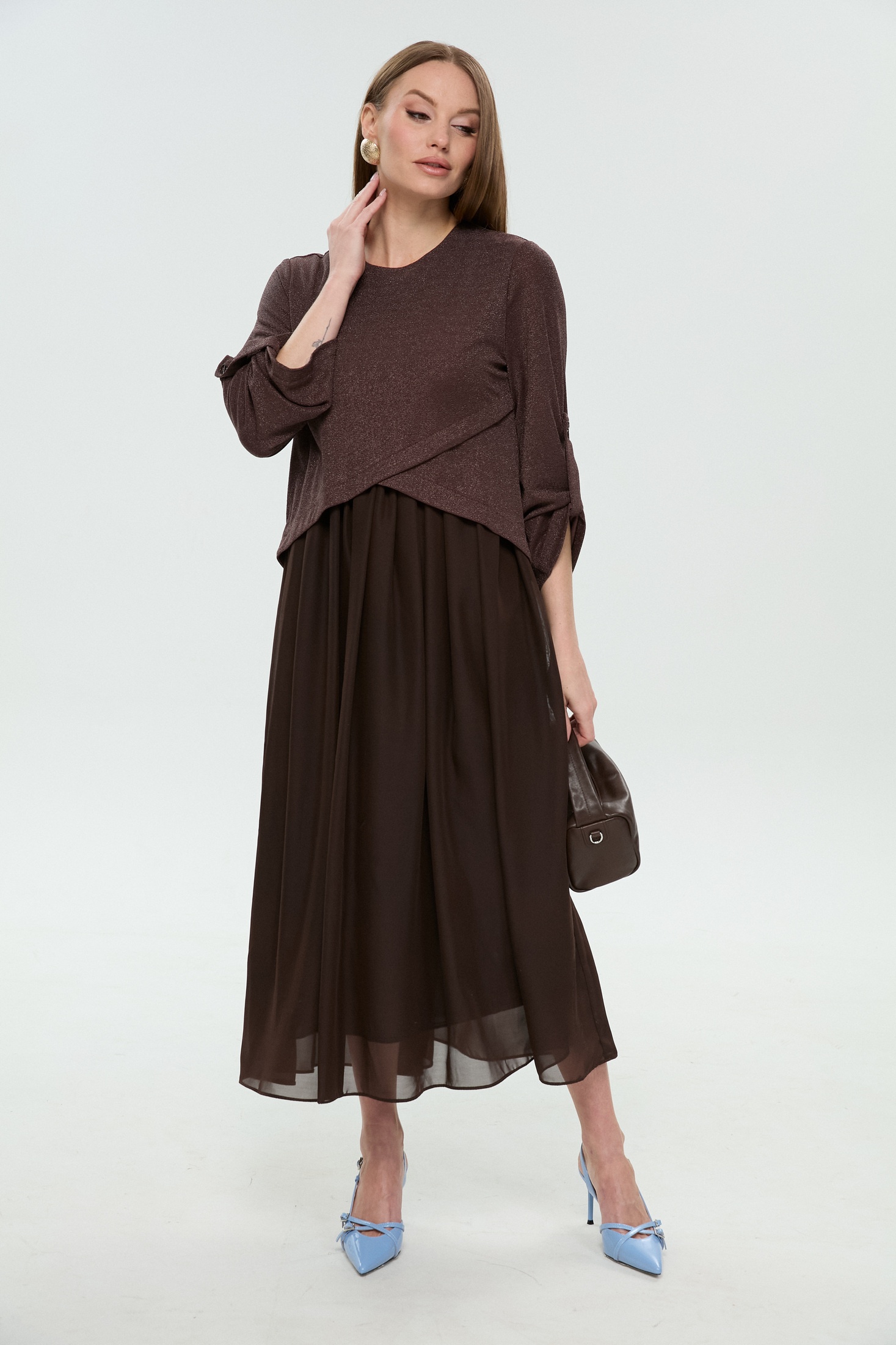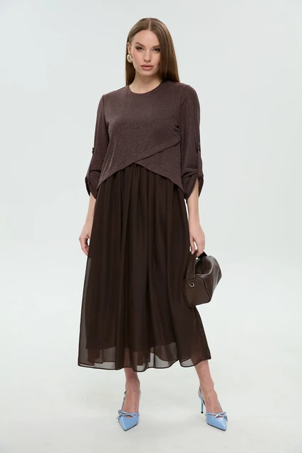 Платье 740-28 NikVa — это идеальное макси-платье для стильных женщин. Коллекция бренда NikVa объединяет материалы высочайшего качества: лиф из хлопка с добавлением люрекса и полиэстера, который отличается мягкостью и эластичностью, а также воздушную шифоновую юбку. Фигурный лиф и полукруглый вырез горловины создают изысканный силуэт, дополненный драпировкой на юбке. Рукава на патах придают изделию элегантный вид, а застежка на молнию по спинке обеспечивает удобство. Платье отлично подходит для весенне-летнего сезона благодаря своей легкой и дышащей ткани. Два цвета подчеркивают стиль и утончённость, делая его идеальным выбором как для праздников, так и для повседневных выходов.